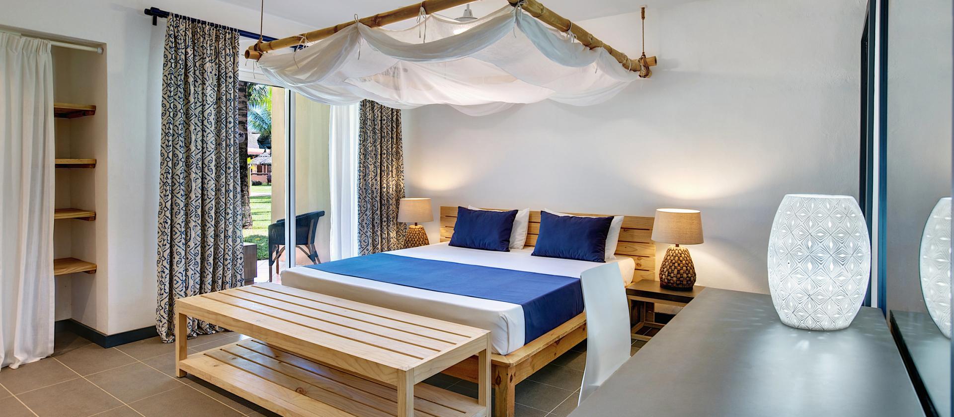 Dwuosobowe pokoje typu Comfort z widokiem na basen lub ogród, urządzone w niebieskich odcieniach z białymi akcentami, łączą lekkość z tropikalną atmosferą. Pokoje Superior o świeżym i lekkim wystroju i designie posiadają taras lub balkon z widokiem na lagunę lub ogród. Pokoje rodzinne Family mogą pomieścić parę z dwojgiem lub trojgiem dzieci. Dodatkowa przestrzeń w pokoju zachwyci dzieci, a rodzicom zapewni prywatność i spokój. Pokoje Privilege zlokalizowane są w części Sandy Lane Village, skrzydle hotelu zarezerwowanym wyłącznie dla dorosłych, z własnym basenem w eleganckim otoczeniu. Pokoje posiadają taras lub balkon.