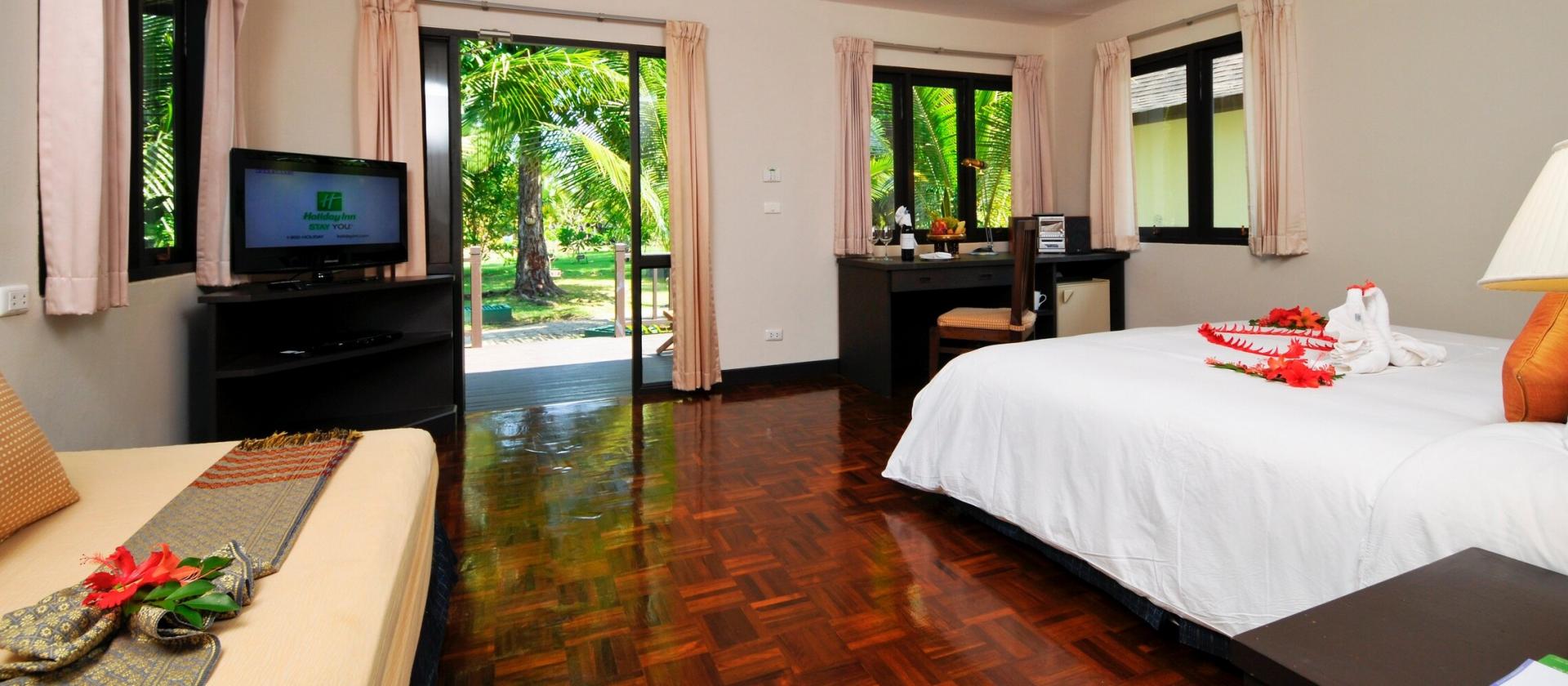 Phi Phi Holiday Resort oferuje 126 komfortowych pokoi rozmieszczonych w dwóch częściach resortu. Urocze bungalowy rozciągają się wzdłuż plaży oraz pośród egzotycznych ogrodów. Współczesne studia znajdują się zaledwie kilka kroków od miękkiego piasku plaży, na lekkim wzniesieniu z którego roztacza się wspaniały widok na morze. Wszystkie klimatyzowane pokoje utrzymane są w tajskim stylu i posiadają balkon. Spośród licznych udogodnień w pokojach znajdują się m.in. telewizor z płaskim ekranem i dostępem do telewizji satelitarnej, odtwarzacz DVD, sejf, lodówka, a także dostęp do bezprzewodowego Internetu.