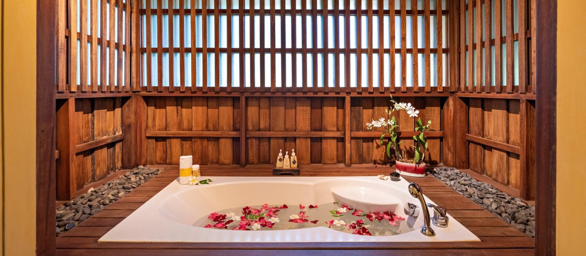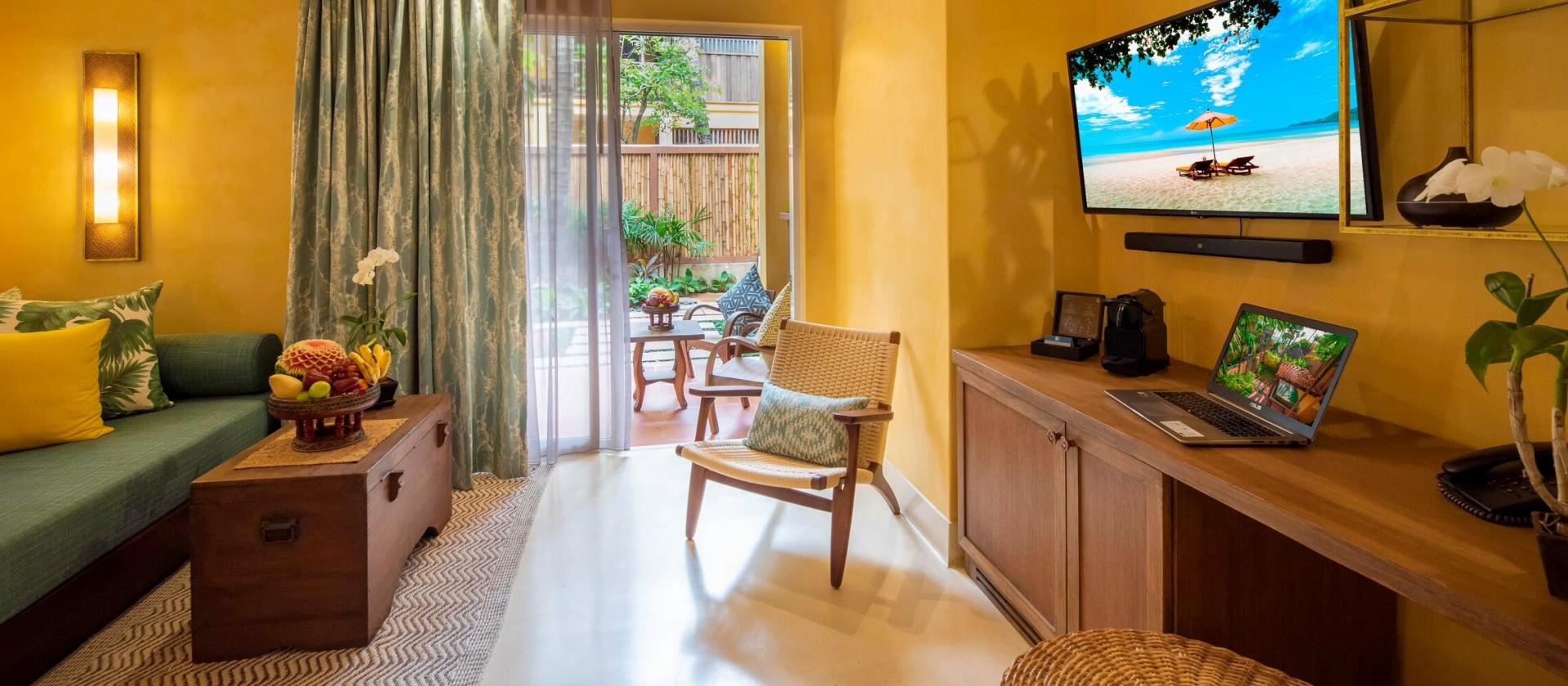 Deluxe Garden Court – pokój z przestronnym patio o łącznej powierzchni 80 metrów kwadratowych. Do pokoju przynależy łazienka, wanna z hydromasażem na otwartym powietrzu oraz bujny tropikalny ogród.