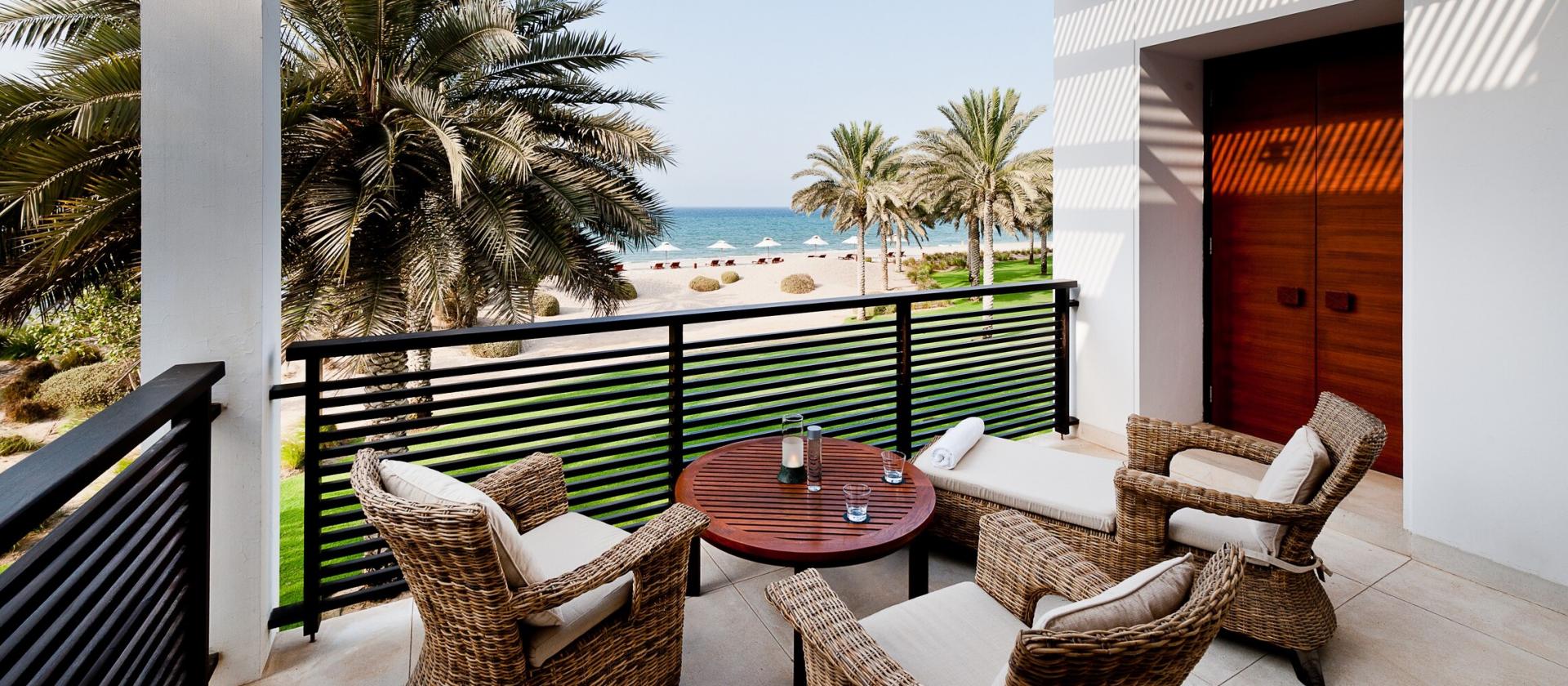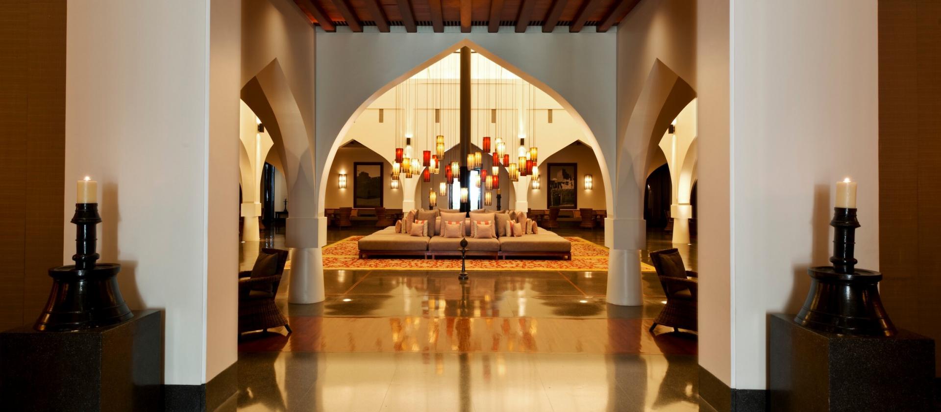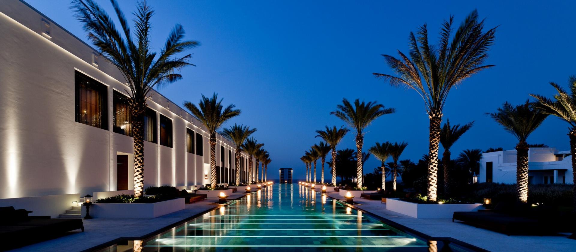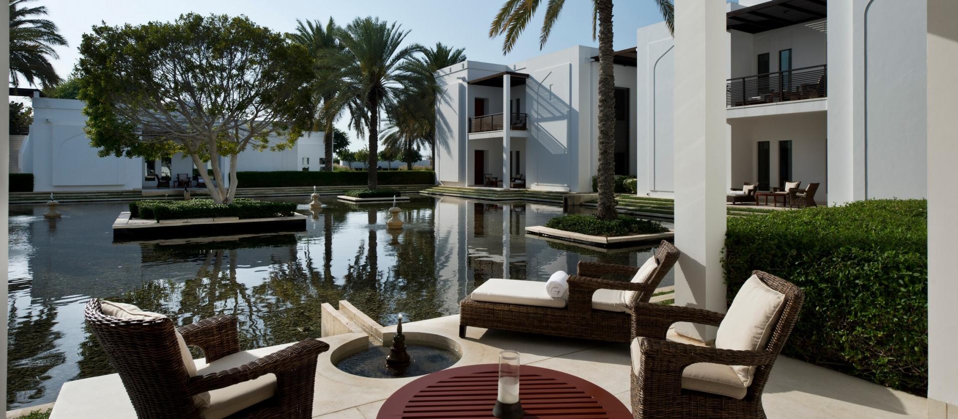 The Chedi Muscat to oaza spokoju – 21 akrów ogrodów zen i wodnych kanałów, położona między górami Hajar a oceanem. Elegancka, minimalistyczna architektura łączy rzemiosło omańskie i japoński styl. Hotel oferuje 162 pokoje, prywatną plażę, trzy baseny, wyśmienite restauracje, spa oraz hojną obsługę w duchu arabskiej gościnności.