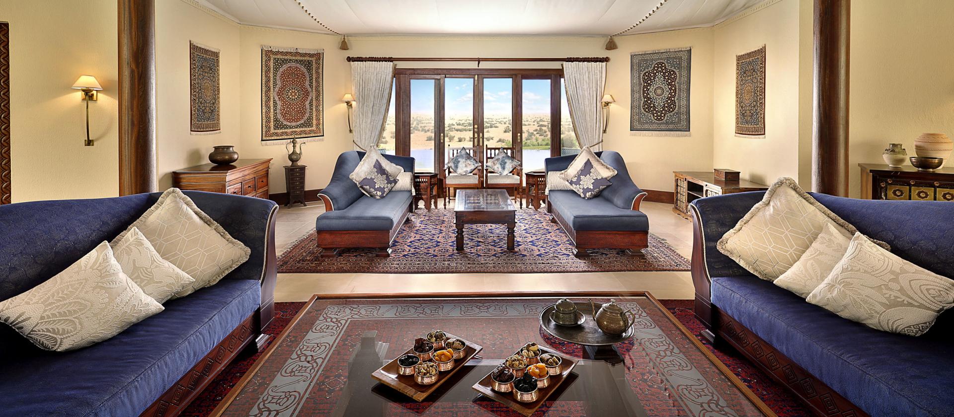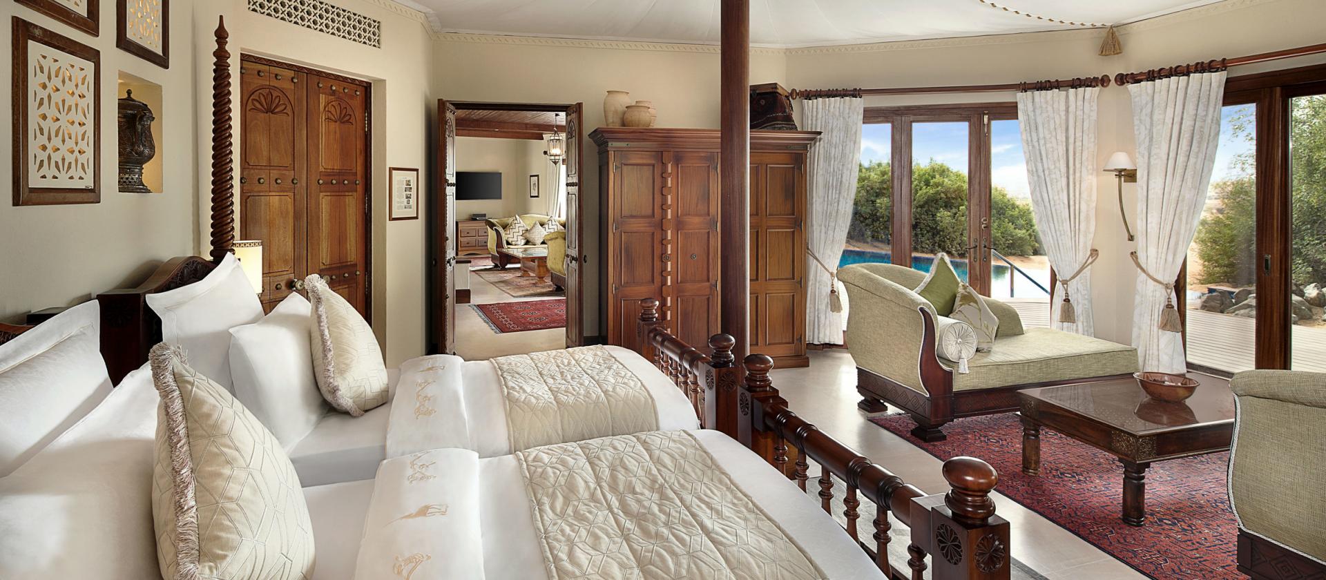 Na gości czekają 42 ekskluzywne wille imitujące beduińskie namioty. Wnętrza komfortowych i przestronnych namiotów łączą dziedzictwo kultury arabskiej z luksusem. Na ich wyposażeniu znajduje się część sypialna z duży łóżkiem oraz część wypoczynkowa z sofą i stolikiem. Łazienka posiada prysznic i osobną wannę. Przed namiotem znajduje się taras z leżakami do opalania oraz basen z regulowaną temperaturą wody.