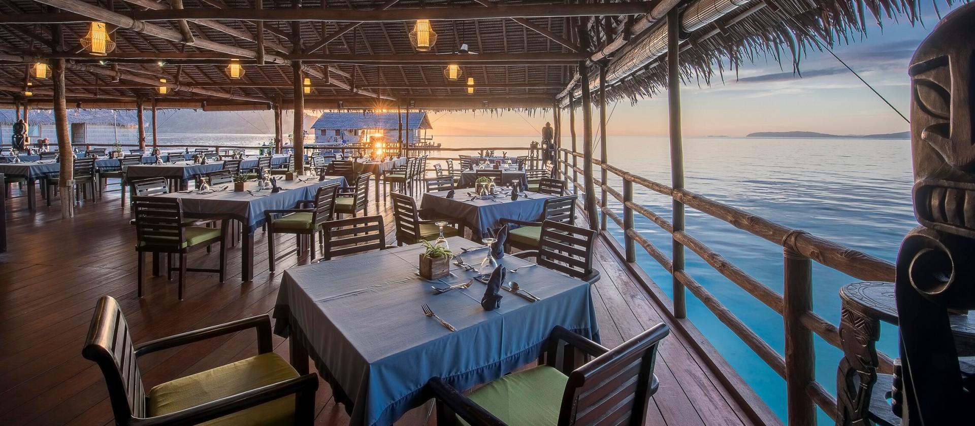 Restauracja z widokiem na ocean została całkowicie odnowiona i ponownie otwarta we wrześniu 2015 roku. Posiłki serwowane są w formie bufetu z szerokim wyborem dań kuchni indonezyjskiej i międzynarodowej, a także świeżych owoców tropikalnych. Napoje bezalkoholowe, lokalne piwo, koktajle i wino są dostępne w Sunset Bar za dodatkową opłatą.