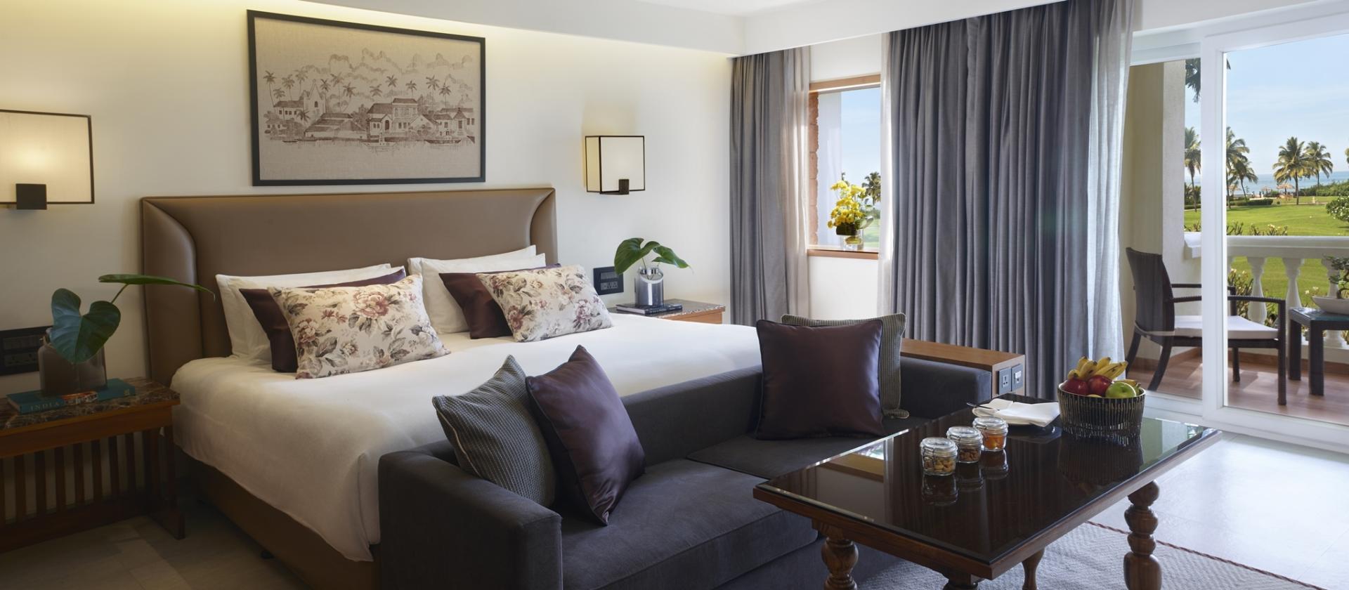 Luksusowy pokój z widokiem na Morze Arabskie, balkonem, 59 mkw., do 3 osób, łóżko King. Wyposażony w wygodną wannę, minibar, Wi-Fi i inne udogodnienia klasy premium.