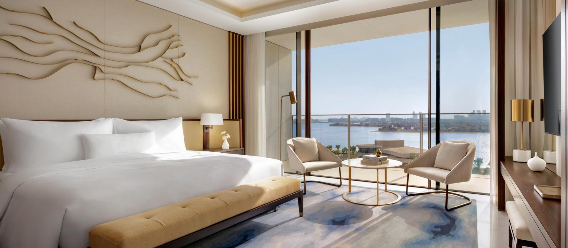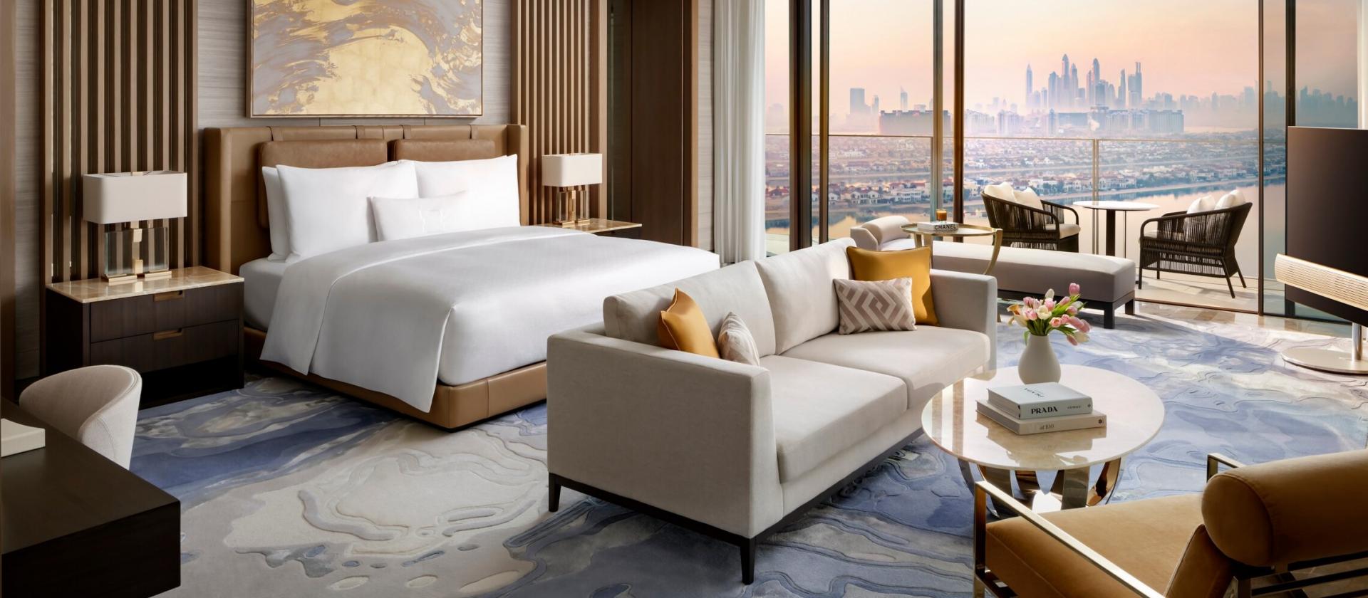Ten luksusowy pokój o powierzchni 55 mkw. z balkonem 9 mkw. zapewnia zapierający dech w piersiach widok na ikoniczną Palmę Jumeirah i panoramę Dubaju. Wnętrze obejmuje łóżko typu king-size lub dwa łóżka queen-size, garderobę oraz elegancką łazienkę z dużym prysznicem i wolnostojącą wanną. Balkon stanowi idealne miejsce do podziwiania tętniącego życiem miasta i jego architektury.