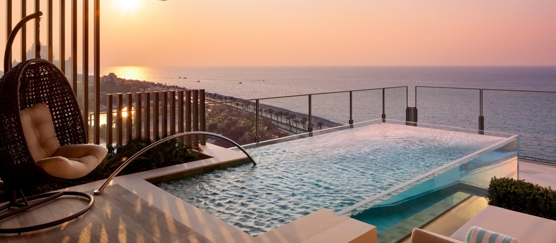 Ekskluzywna willa o powierzchni 118 mkw. z tarasem o powierzchni od 100 do 210 mkw., wyposażonym w prywatny basen infinity. Oferuje widok na Zatokę Arabską lub Palmę Jumeirah, sypialnię z łóżkiem typu king-size, oddzielny salon oraz luksusową łazienkę. Taras z basenem zapewnia prywatność i niezapomniane wrażenia z kąpieli z widokiem na horyzont.
