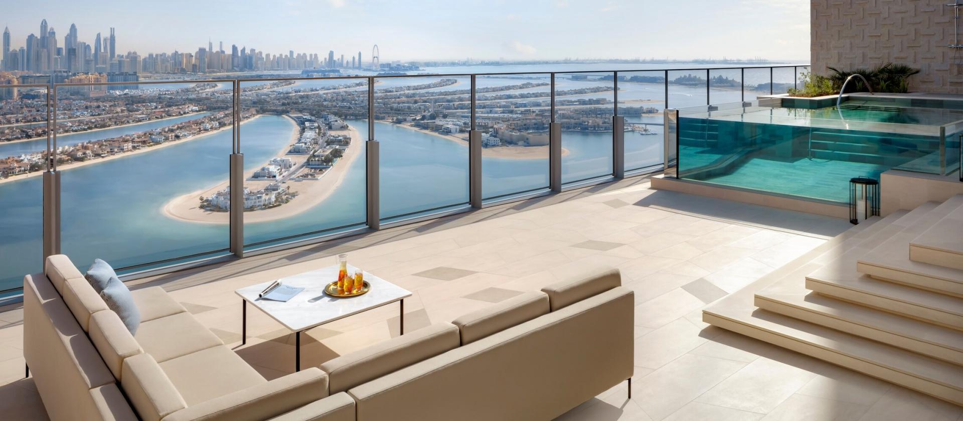 Dwupoziomowy penthouse o powierzchni 185 mkw. z tarasem 336 mkw., wyposażonym w prywatny basen infinity. Zapewnia widok zarówno na Zatokę Arabską, jak i Palmę Jumeirah, składa się z jednej sypialni, oddzielnego salonu i jadalni oraz luksusowej łazienki. Taras oferuje przestrzeń do relaksu i rozrywki na najwyższym poziomie.