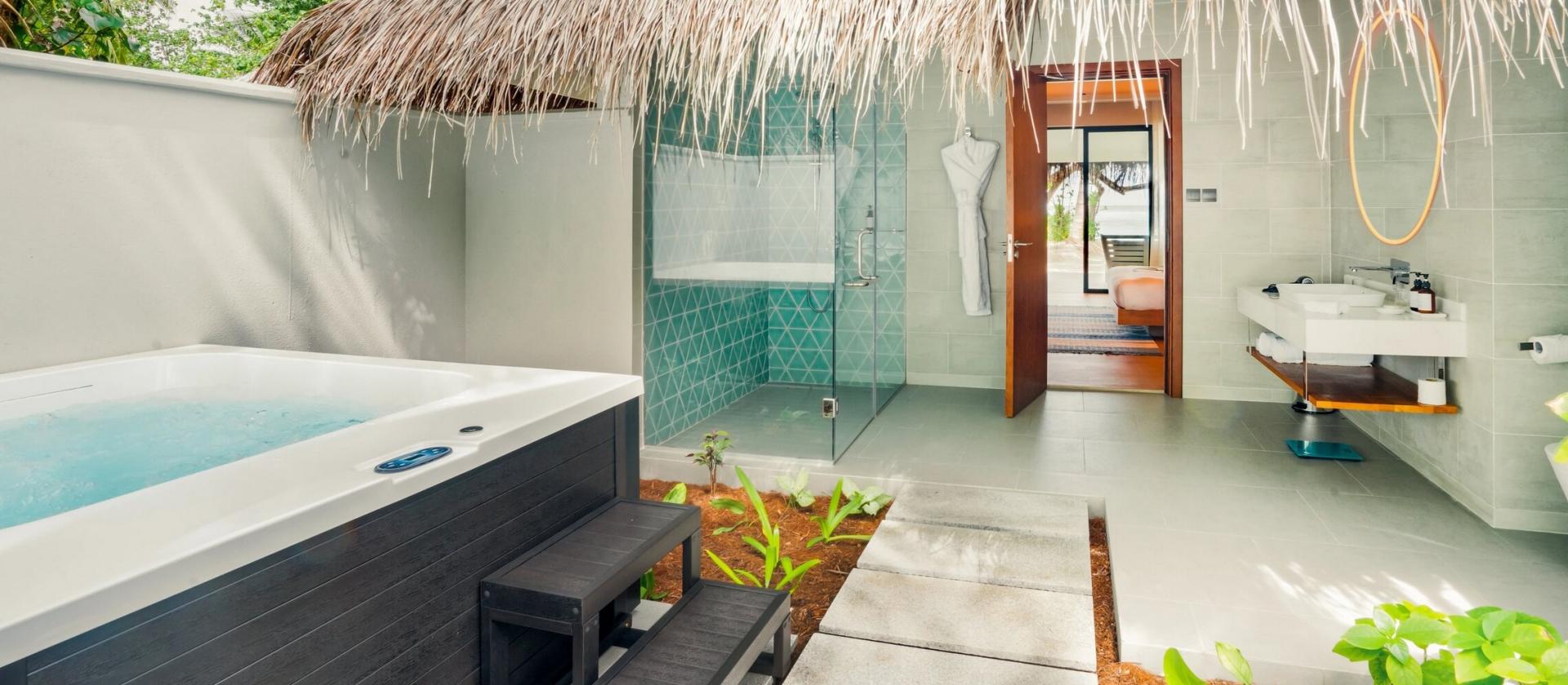 Water Villa with Jacuzzi to willa nad wodą o powierzchni około 125 mkw., zaprojektowana z myślą o komforcie dwóch osób, ceniących luksusowe dodatki.