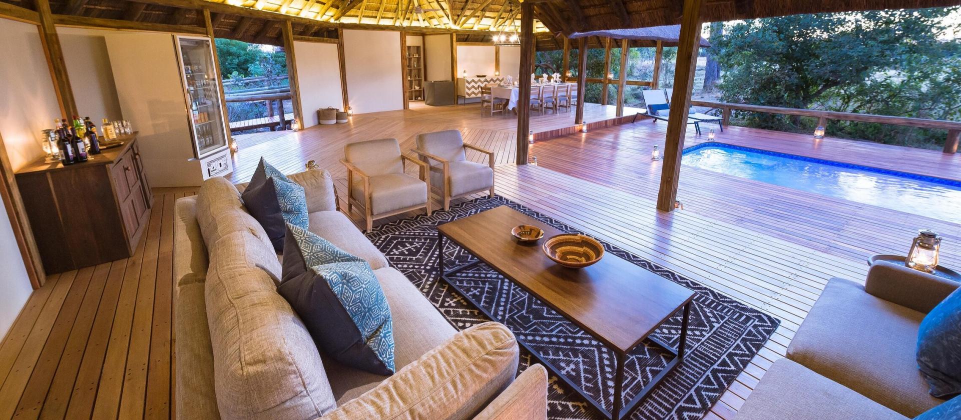 Obóz oferuje również Splash Enclave – prywatną część z własnym basenem, salonem i jadalnią, idealną dla grup 6–10 osób poszukujących bardziej intymnego doświadczenia safari.