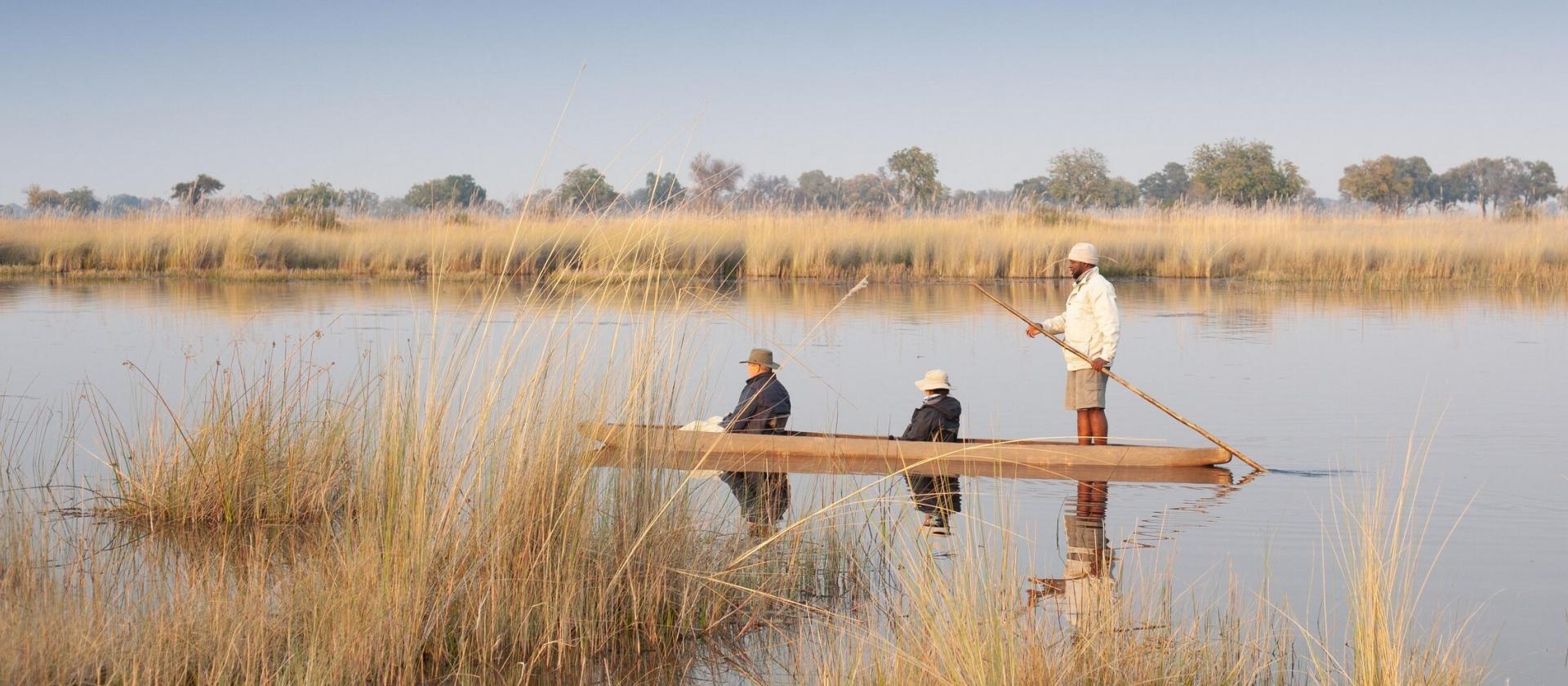 Rejsy mokoro i łodzią: Tradycyjne canoe pozwalają na ciche przemieszczanie się po wodnych kanałach Delty, umożliwiając bliskie spotkania z hipopotamami i ptactwem wodnym.