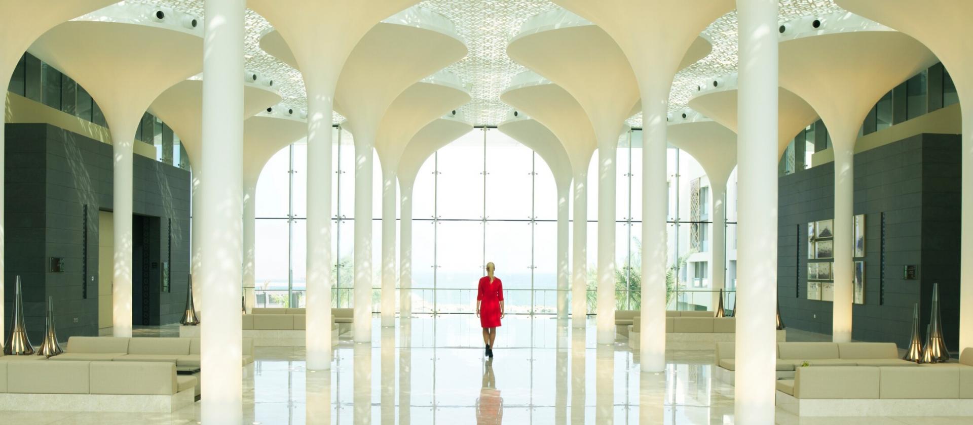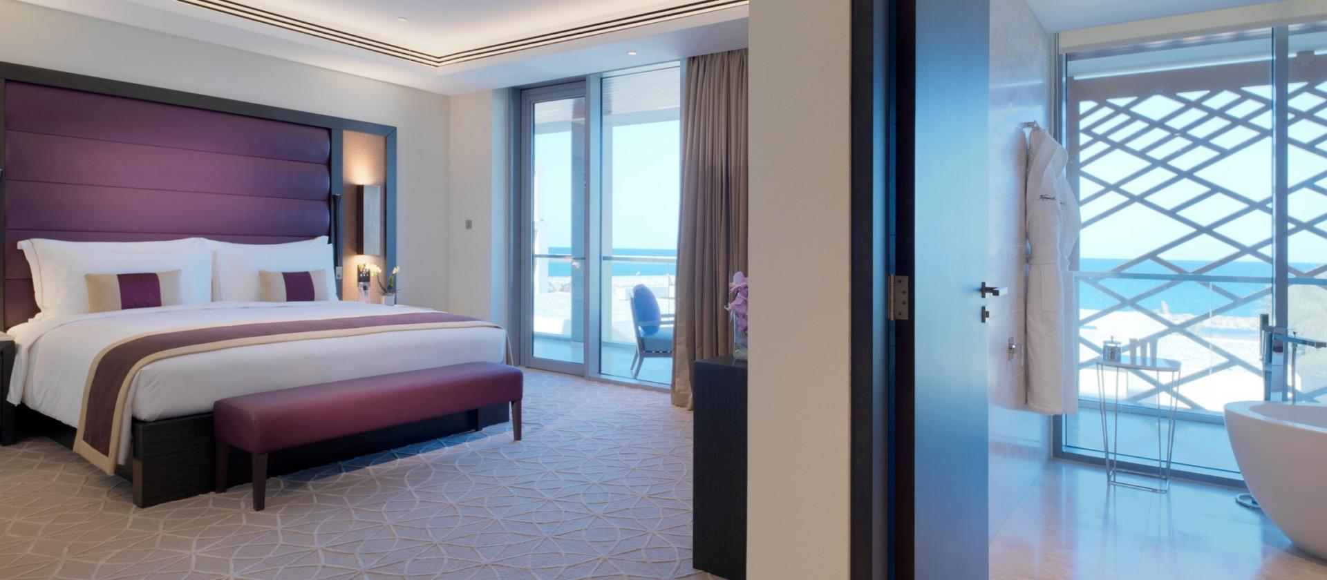 Kempinski Hotel Muscat to luksusowy, pięciogwiazdkowy resort położony w prestiżowej dzielnicy Al Mouj, tuż nad Zatoką Omańską. Nowoczesna architektura, inspirowana lokalnymi tradycjami, łączy arabską elegancję z europejskim stylem. Hotel oferuje 310 przestronnych pokoi i apartamentów z panoramicznymi widokami na morze, ogród lub baseny. Wnętrza wyróżniają się eleganckim, minimalistycznym wystrojem oraz luksusowymi wykończeniami – w tym marmurowymi łazienkami z wannami wolnostojącymi i prysznicami typu rain shower.