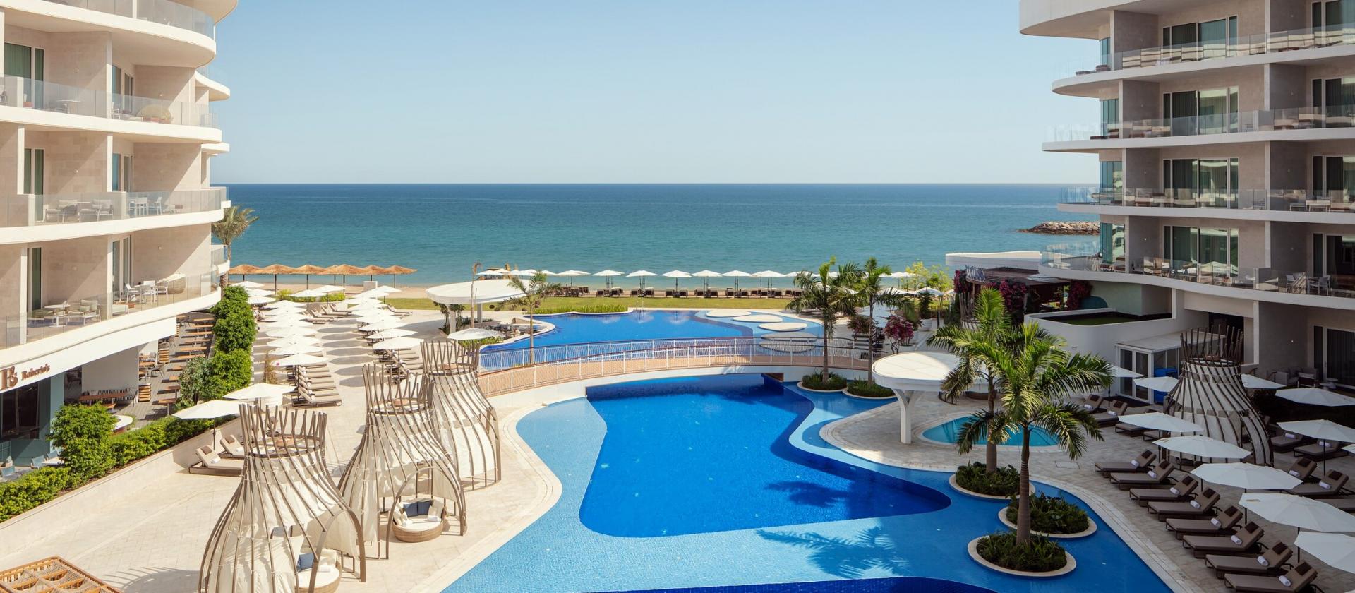 Położony w prestiżowej dzielnicy Al Mouj, St. Regis Al Mouj Muscat łączy nadmorski relaks z luksusem. Goście korzystają z pięknych pokoi i suite'ów inspirowanych jachtowym stylem, z widokiem na ocean lub pole golfowe. Do dyspozycji: dziewięć restauracji, spa, prywatna plaża, baseny i dedykowany serwis St. Regis Butler. Idealny wybór dla wymagających podróżnych.