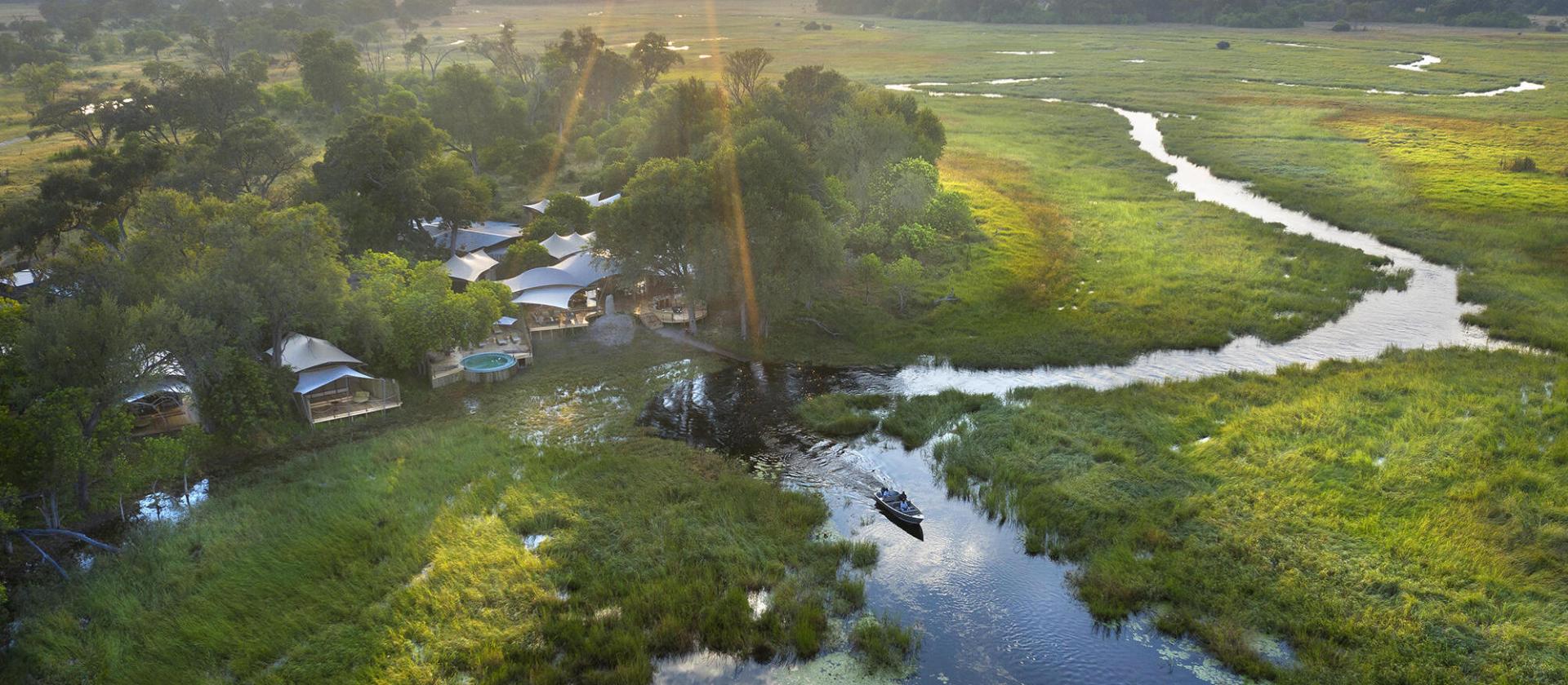 Khwai Leadwood to elegancki obóz safari położony pod baldachimem drzew nad rzeką Khwai, tuż przy granicy rezerwatu Moremi – jednego z najstarszych obszarów chronionych delty Okavango. Oferuje sześć luksusowych namiotów, suite rodzinny i romantyczny suite dla nowożeńców. Bliski kontakt z dziką przyrodą i styl tworzą wyjątkowe doświadczenie.
