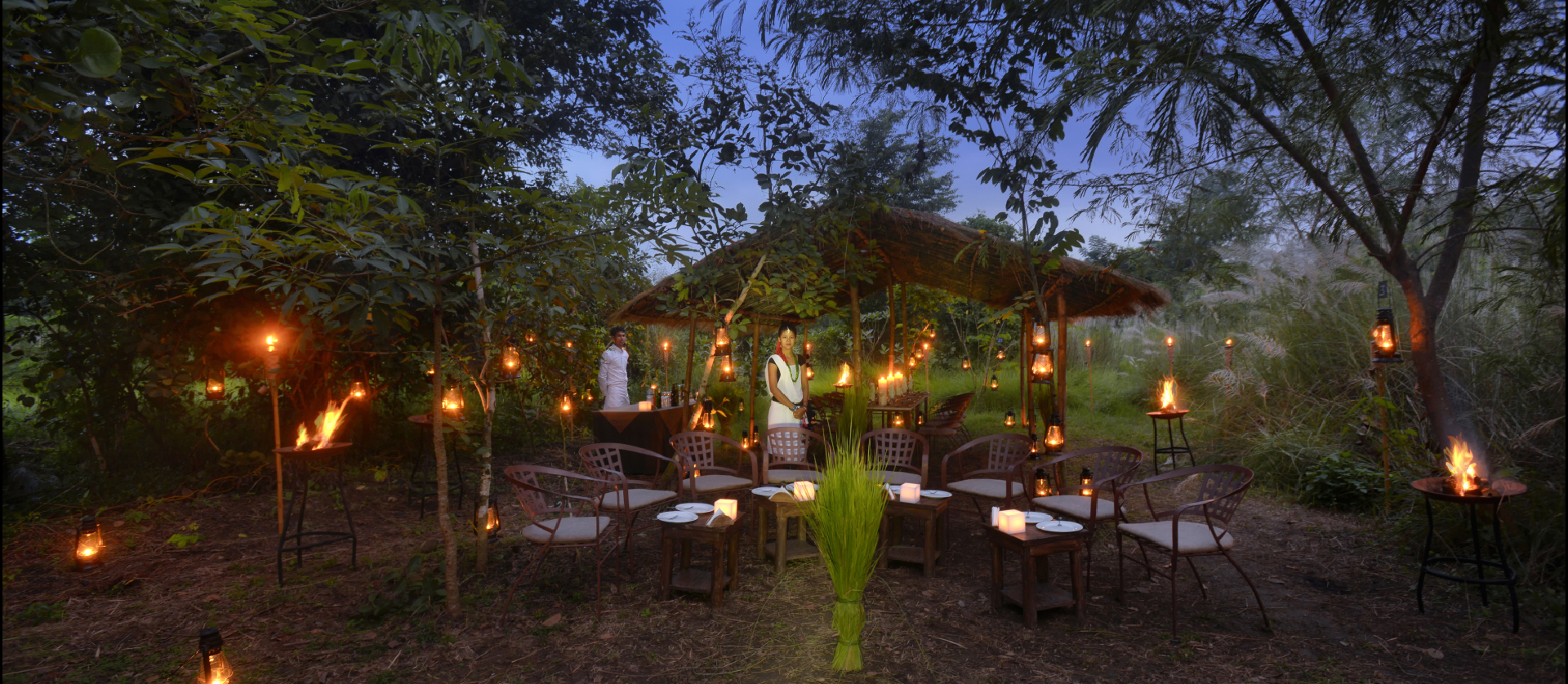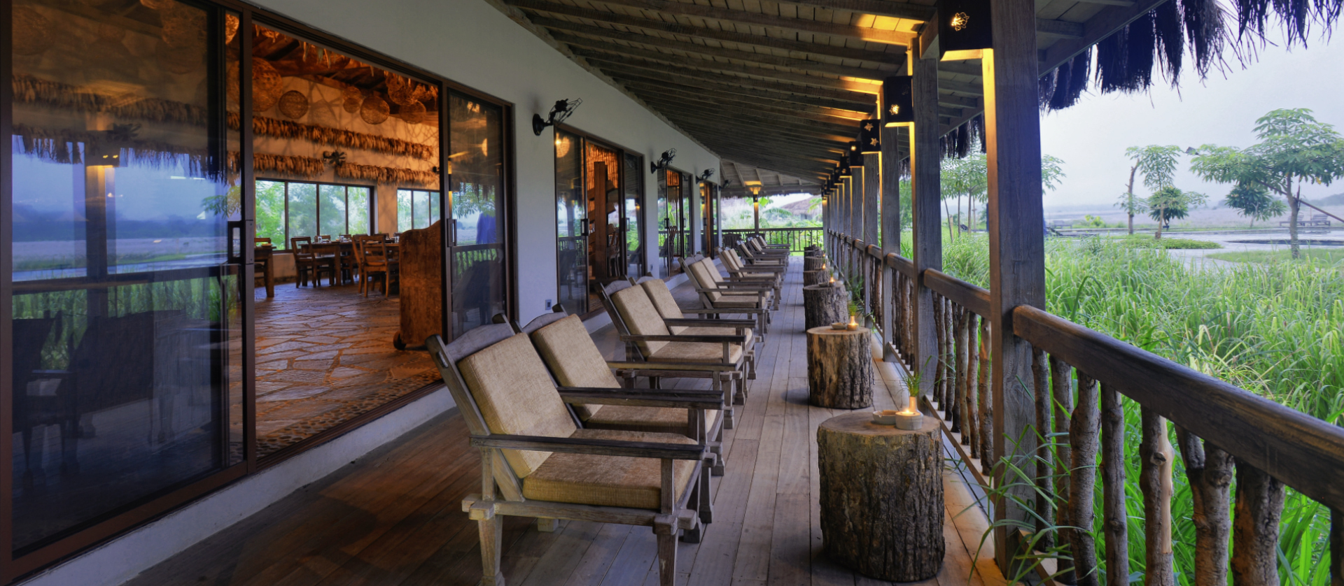 - Położony nad rzeką Rapti, niemal naprzeciw Parku Narodowego Chitwan, pozwala podziwiać dziką przyrodę z okien domków