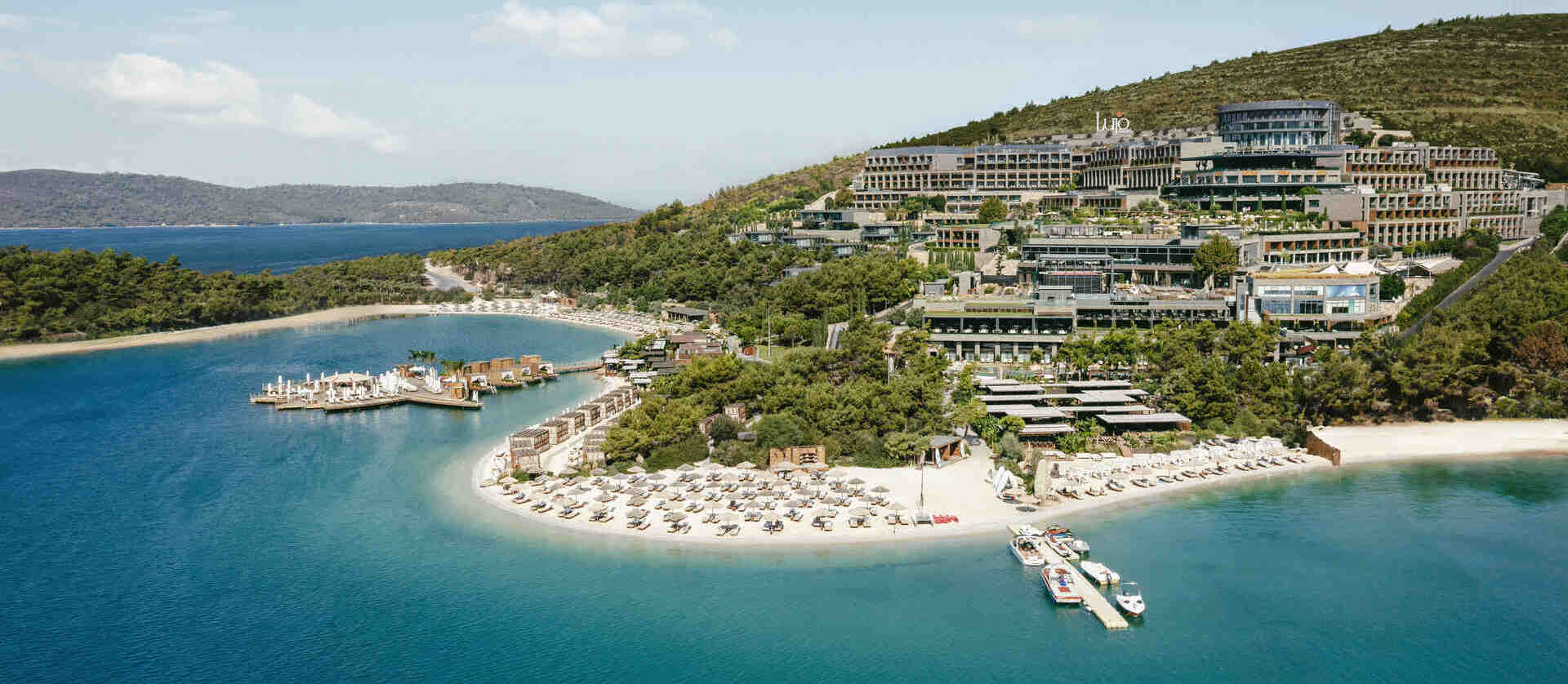 Wyobraźcie sobie miejsce, gdzie spotyka się błękit Egejskiego Morza, śródziemnomorska roślinność, design i najwyższy komfort ‒ to Lujo Hotel Bodrum. Położony na zboczu nad zatoką Guvercinlik, resort oferuje spektakularne widoki na morze, prywatną plażę, liczne baseny i wille, które są oazą spokoju i luksusu.