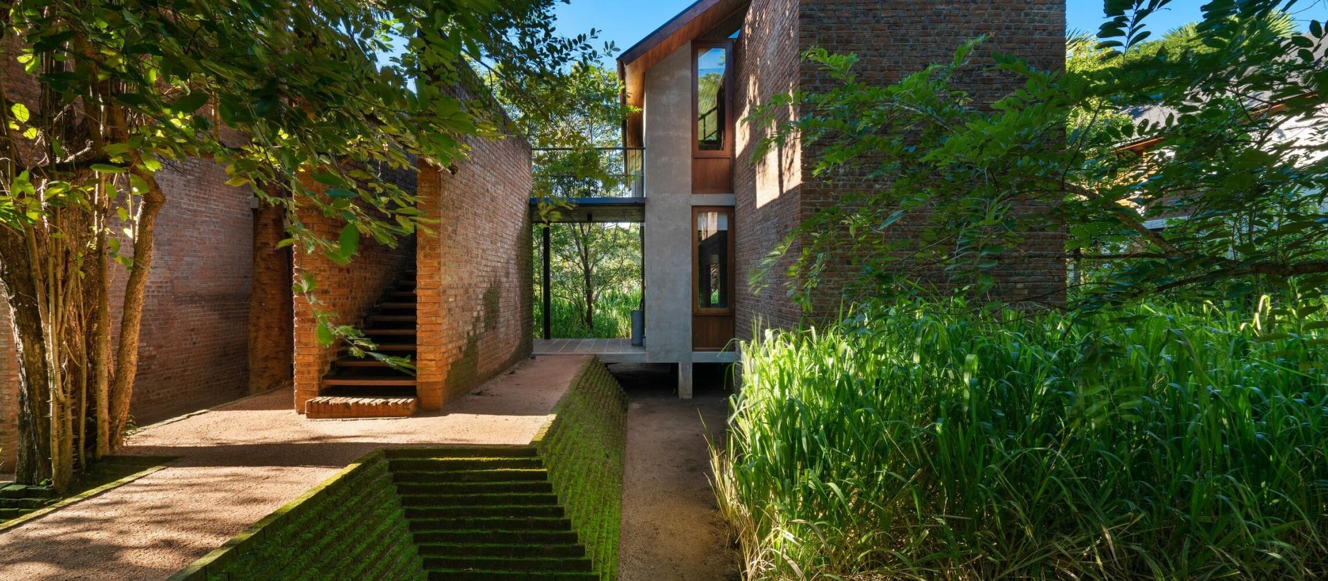 Starannie zaprojektowane struktury budynków i pomieszczeń, elementy z cegły, naturalne barwy, minimalistyczne wykończenia, duże przeszklenia — wszystko to tworzy spójną estetykę.