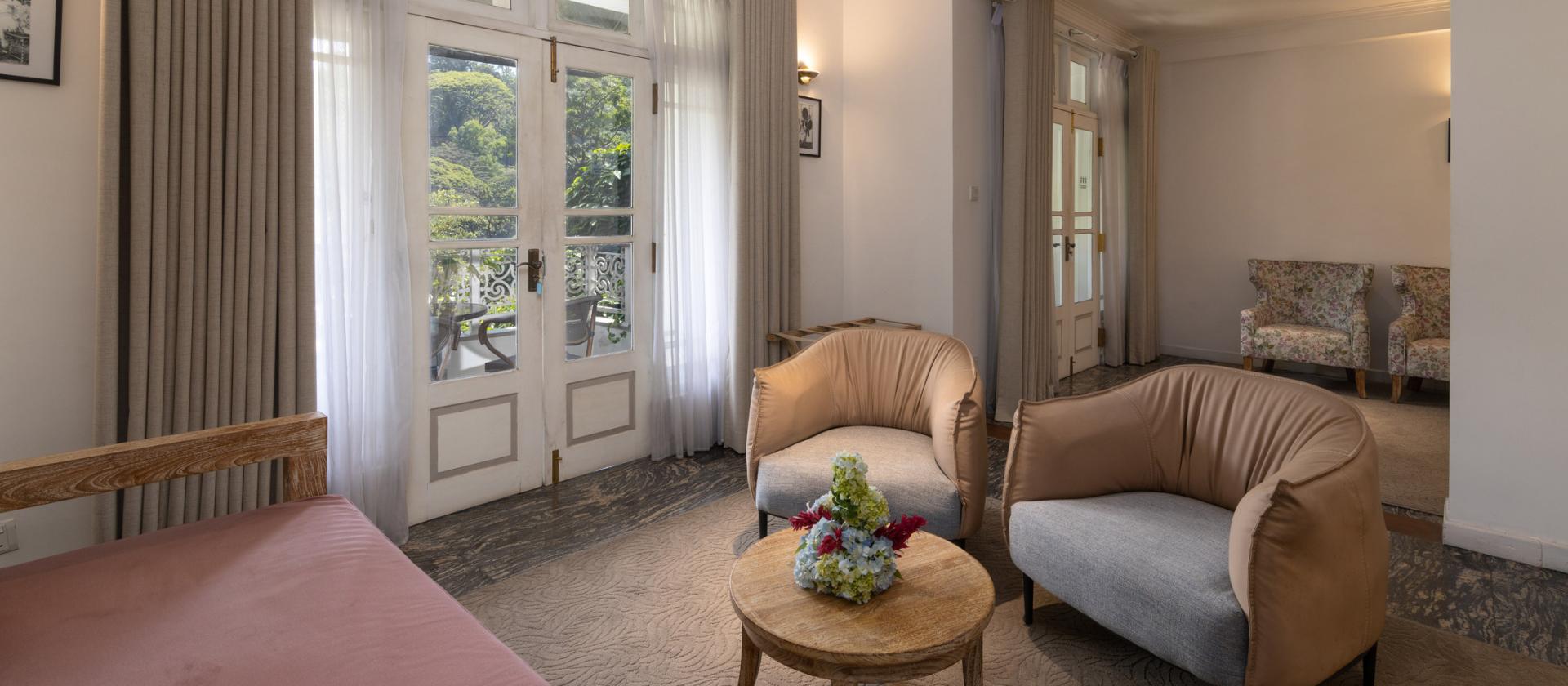 To eleganckie apartamenty z prywatnym balkonem i widokiem na jezioro Kandy. Zostały zaprojektowane z myślą o komforcie i prywatności — wyposażone w klimatyzację, mini-lodówkę, telewizję kablową, dostęp do Internetu oraz zestaw do kawy i herbaty.