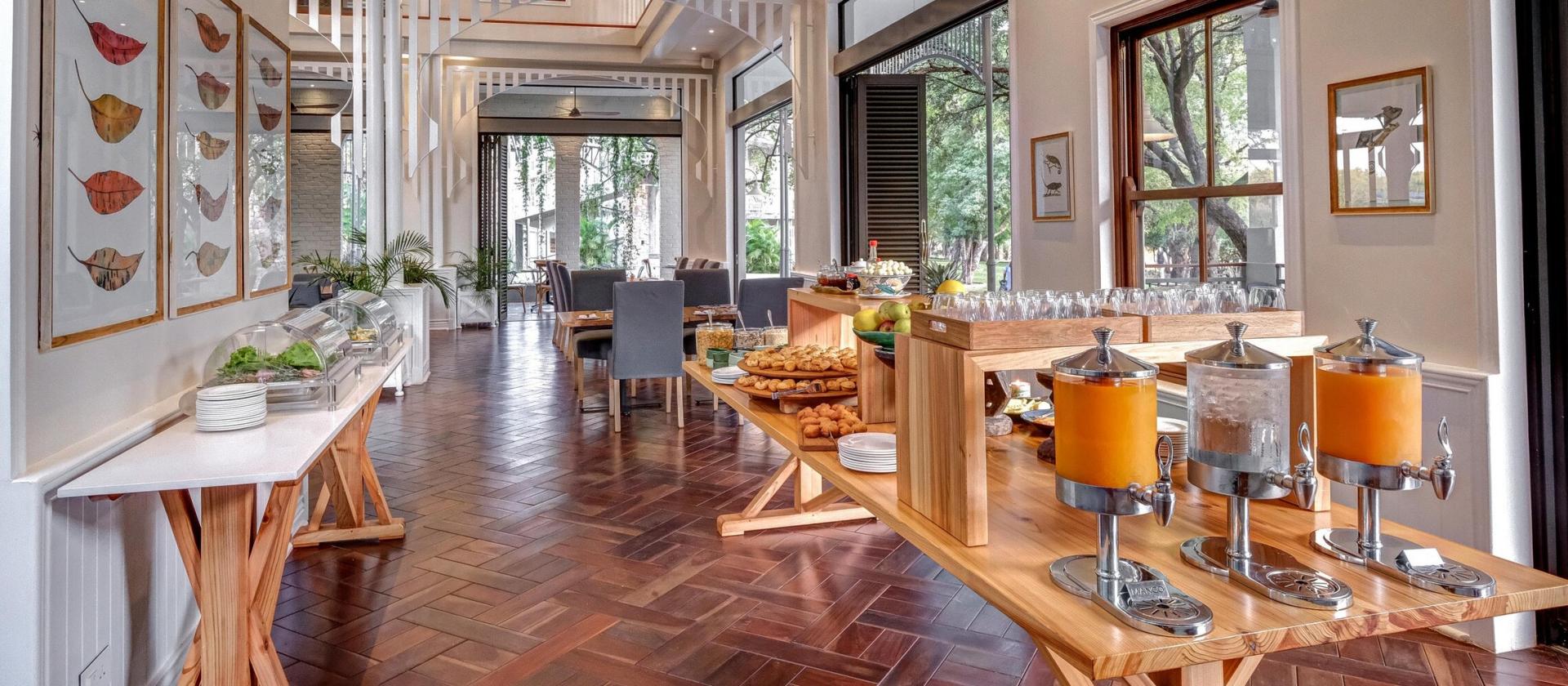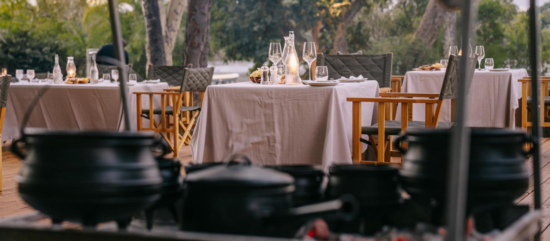 - Hotel posiada restaurację z kuchnią międzynarodową przystosowaną do lokalnych warunków, możliwość doświadczeń nad rzeką, opcje rejsów po Zambezi, prywatne kolacje nad brzegiem, spa i inne opcje wellness