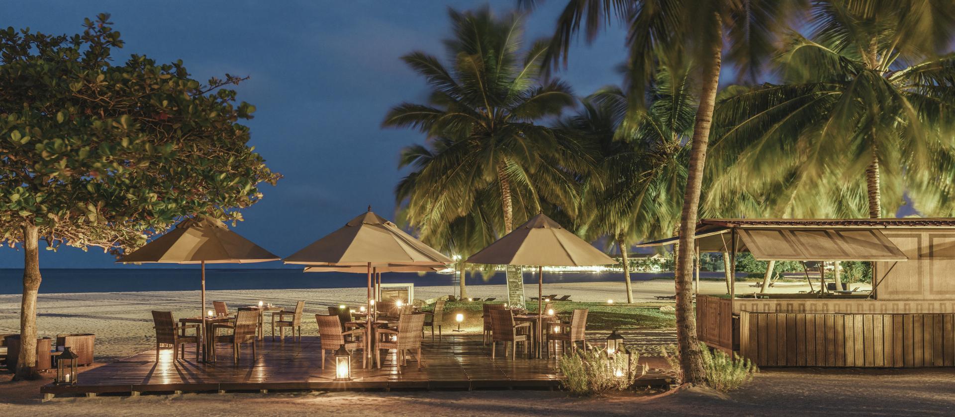 Restauracja i bar – elegancka restauracja serwująca dania kuchni lokalnej i międzynarodowej, bar przy plaży lub przy recepcji, koktajle z widokiem na fale i palmowy cień