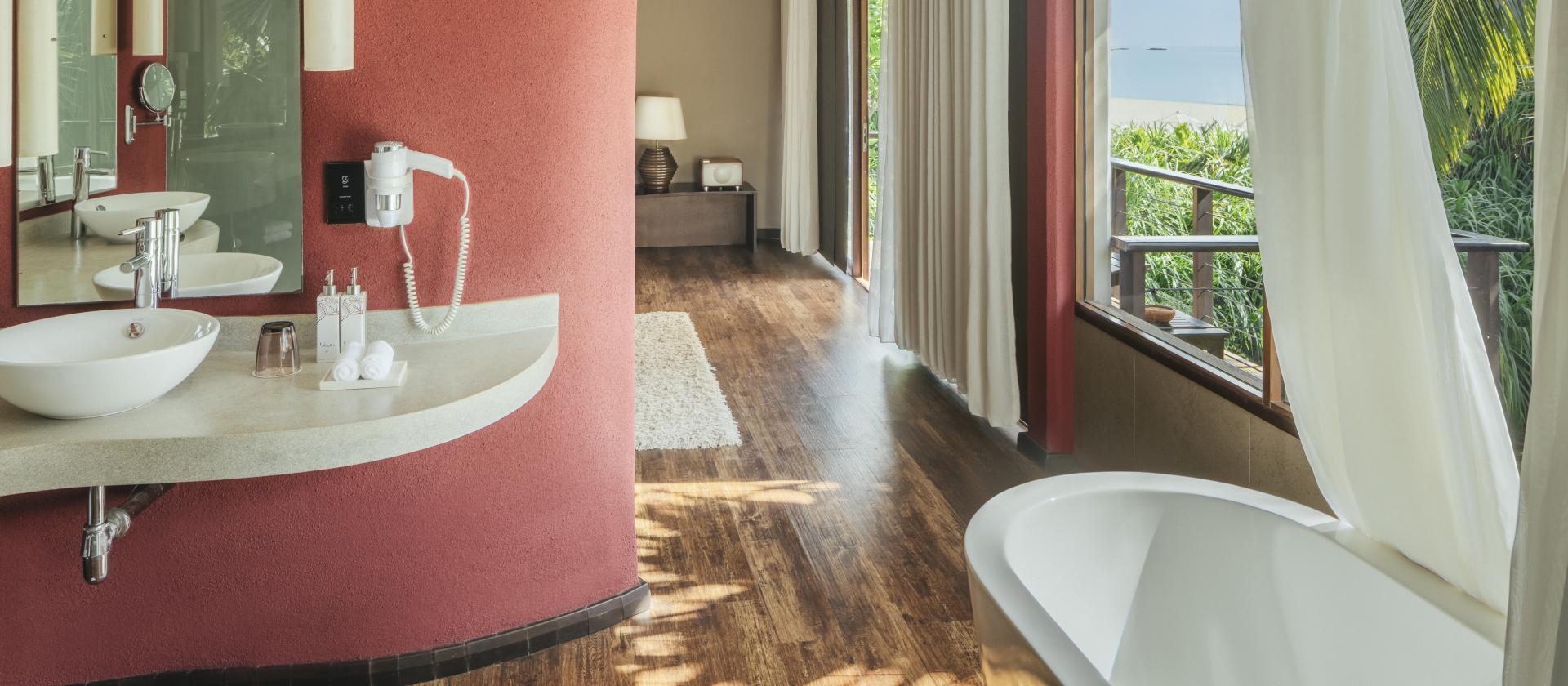 Usytuowane na piętrze, oferują panoramiczny widok na turkusową zatokę Passikudah. To propozycja dla tych, którzy cenią przestrzeń i widoki – z balkonu można podziwiać wschód słońca nad oceanem, delektując się poranną kawą. Wnętrza mają podobny metraż do Beach Studio, lecz dzięki wysokości zapewniają większe poczucie prywatności i przewiewności. Wystój łączy naturalne drewno, lekkie tkaniny i jasne kolory, co nadaje im lekkości i ciepła.