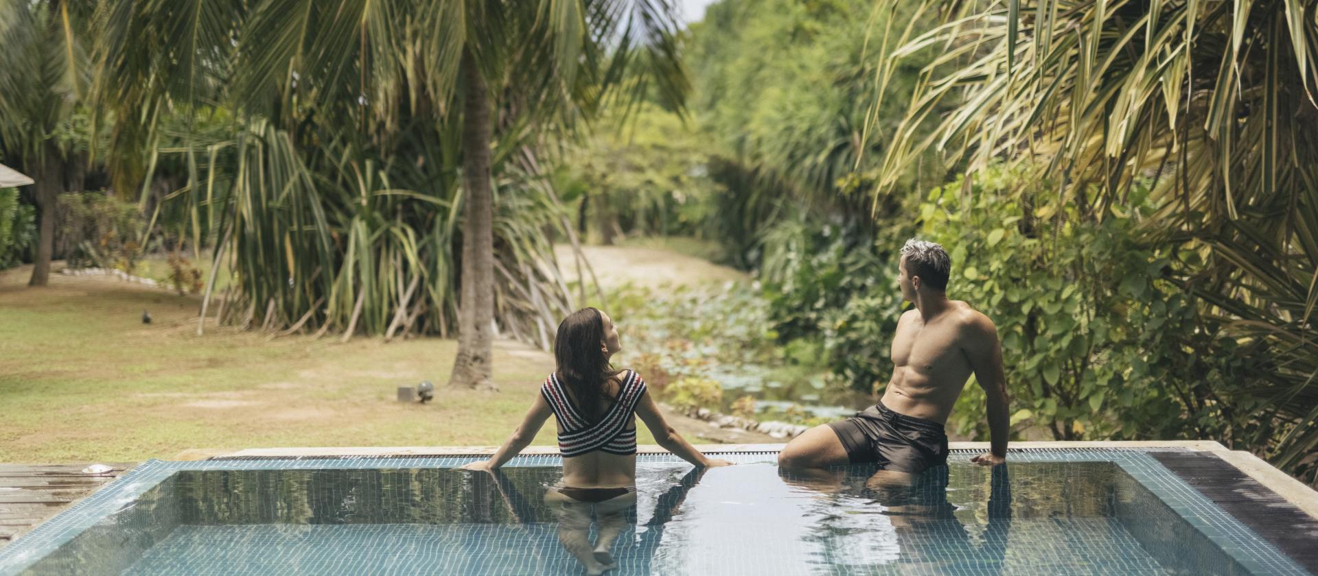 - Par pragnących romantycznego wypoczynku w tropikach — spokojna plaża, widoki oceanu, relaks w spa