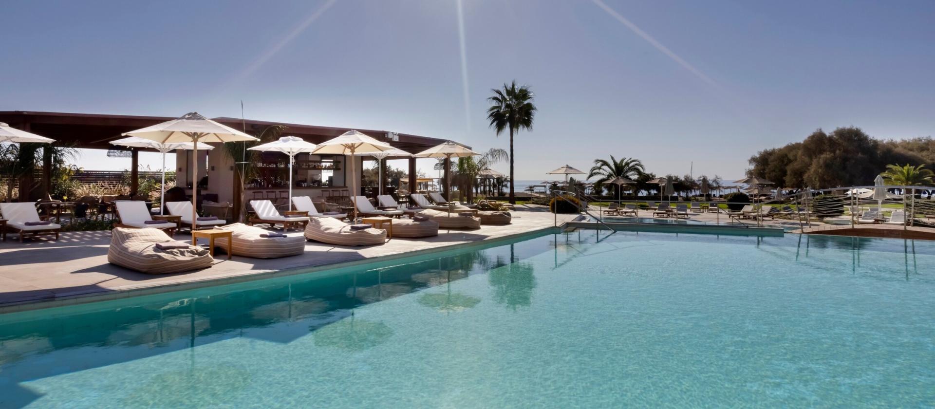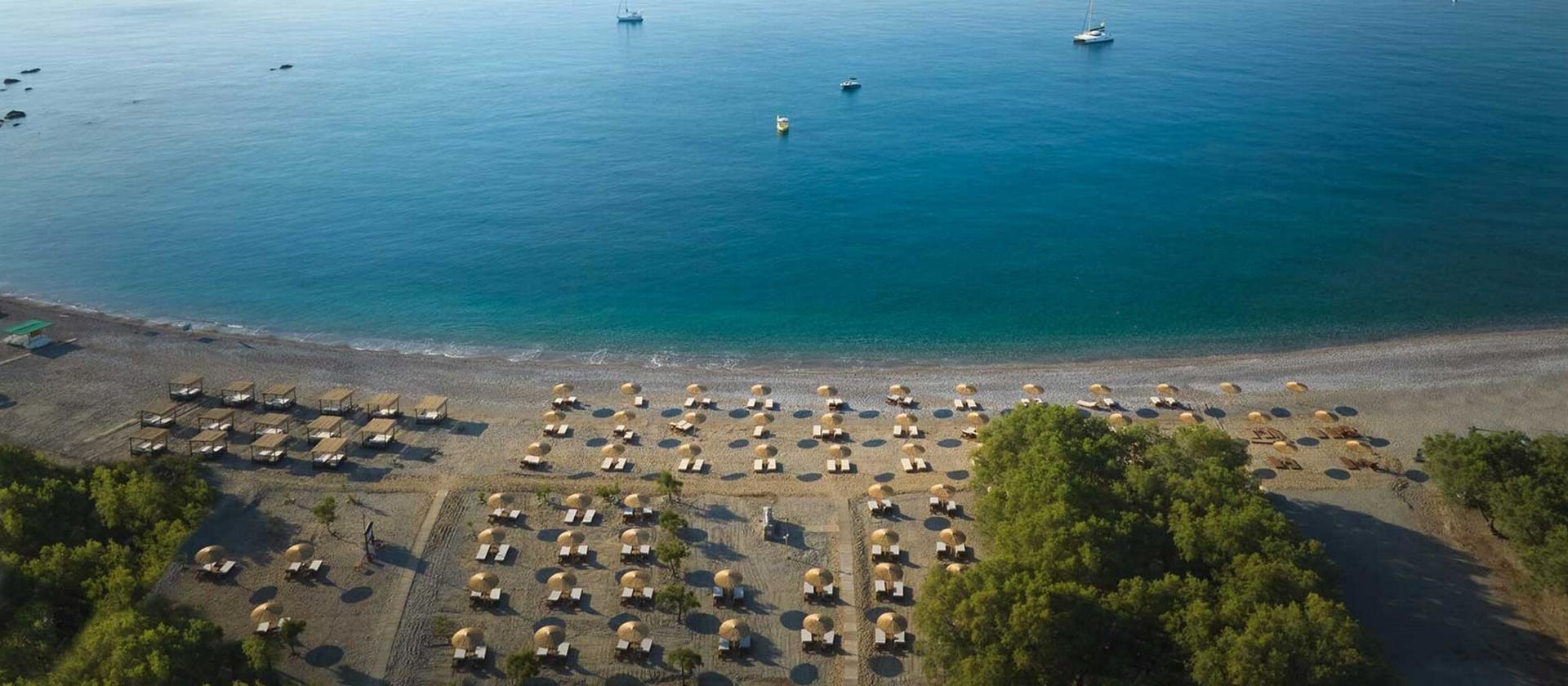 Baseny i plaża: Bezpośredni dostęp do piaszczystej plaży Lardos z bezpłatnym serwisem, baseny ogólnodostępne oraz prywatne baseny w wybranych kategoriach pokoi