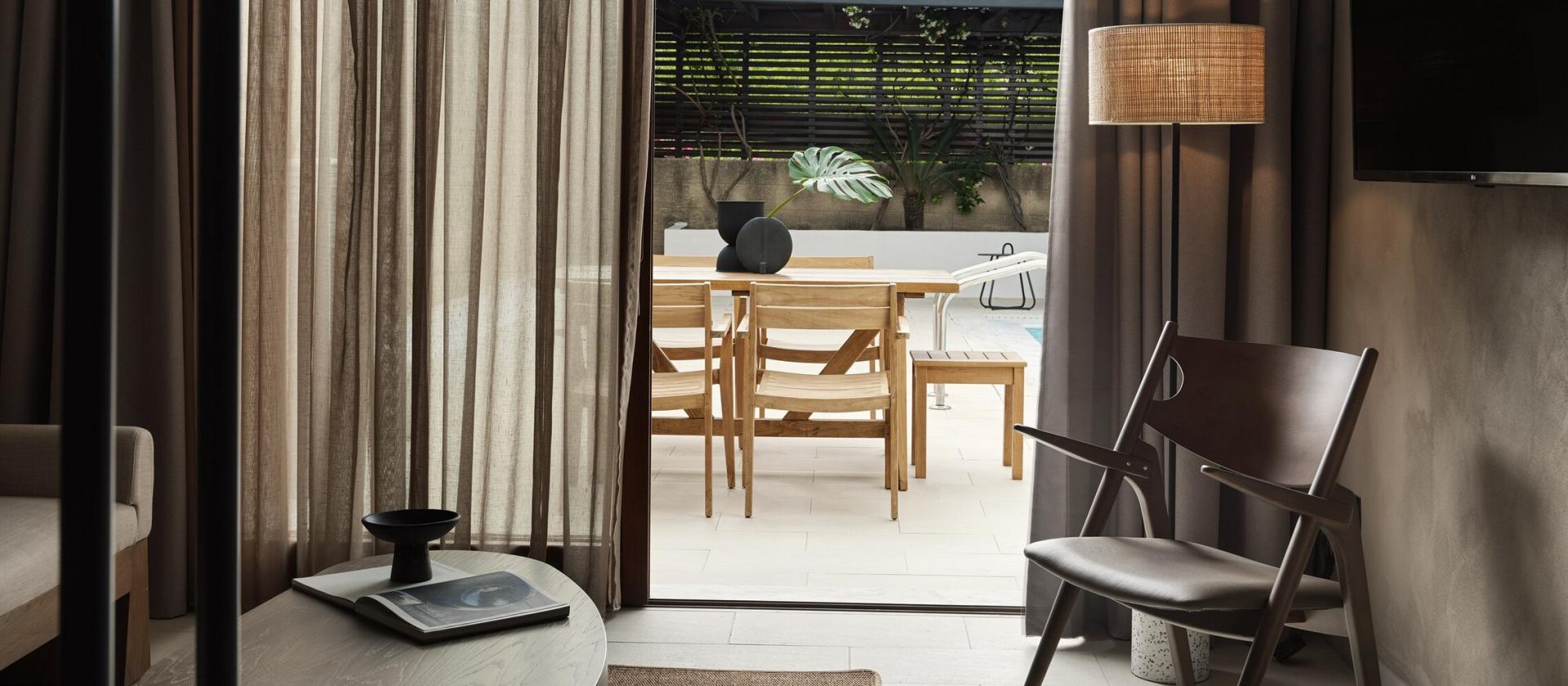 Tropical Retreat - nieco większa wersja pokoju o powierzchni 30 mkw., która oferuje dodatkową przestrzeń do wypoczynku. Jasne, ziemiste kolory i naturalne materiały tworzą tu relaksującą atmosferę, idealną dla dwóch osób dorosłych ceniących styl Domes