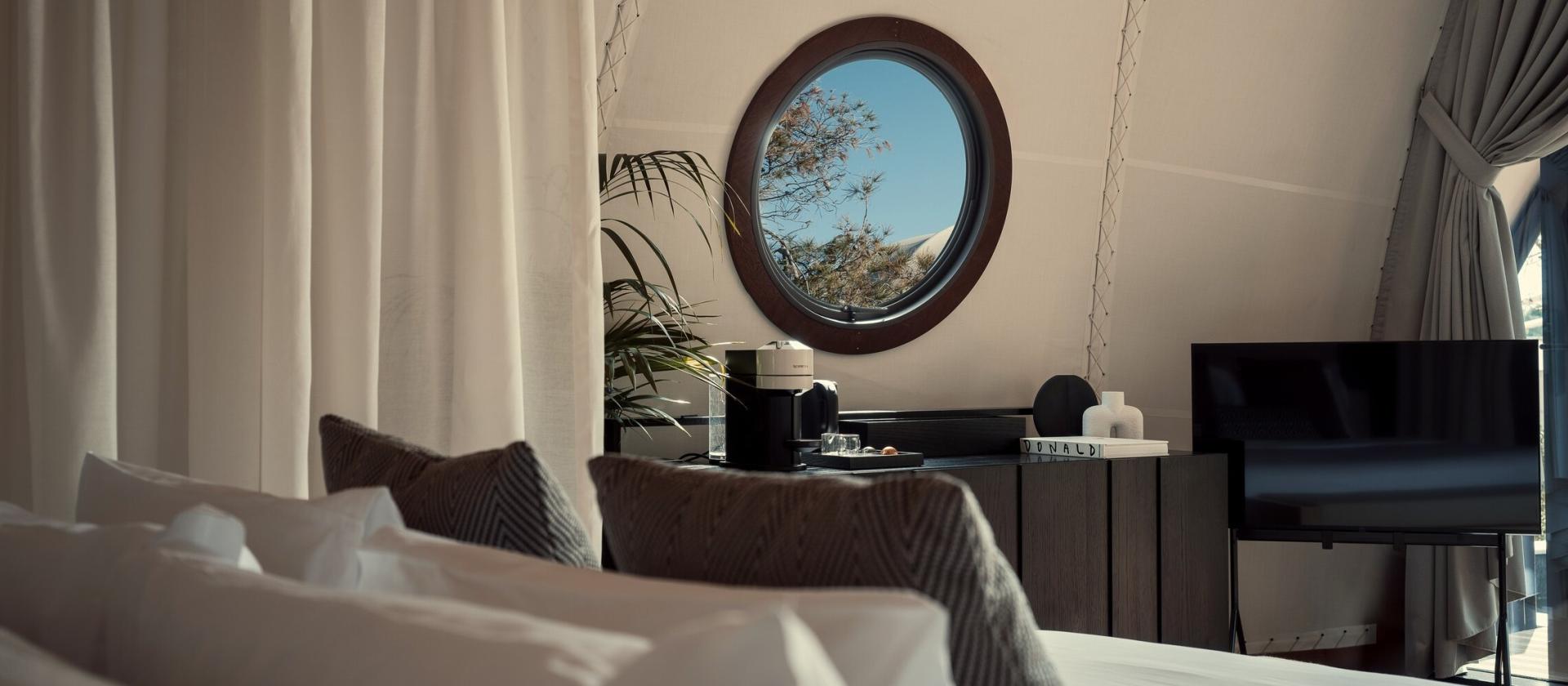 - Innowacyjne podejście do wypoczynku w formie luksusowego glampingu, które pozwala Wam spać w designerskich kabanach pod greckim niebem, zachowując przy tym wszelkie udogodnienia i serwis znany z najbardziej prestiżowych hoteli świata