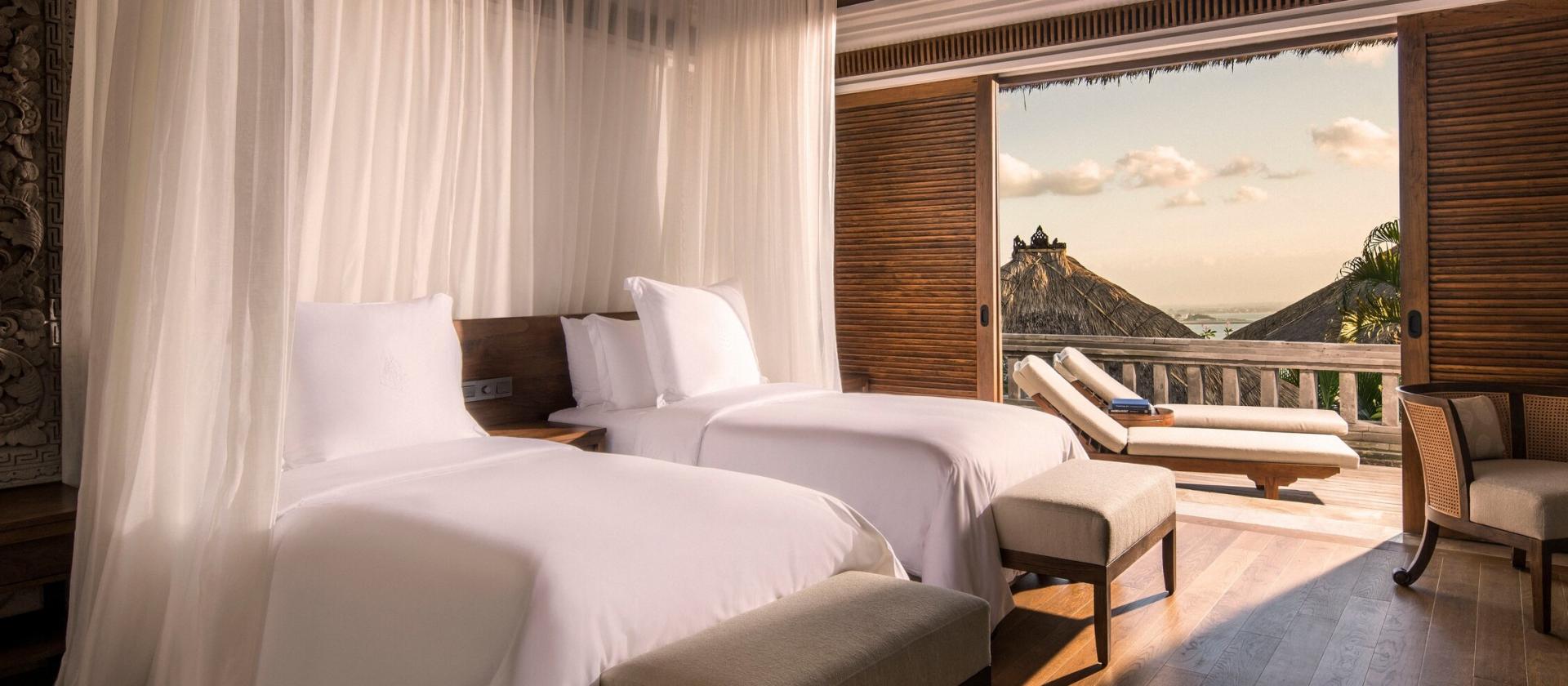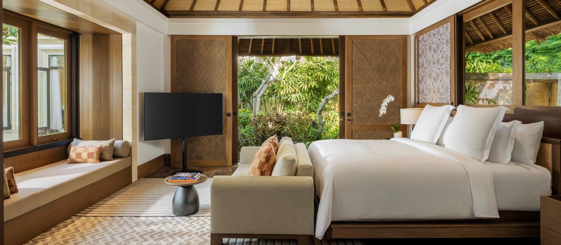 Sercem Waszego pobytu stanie się prywatna willa, będąca architektonicznym majstersztykiem inspirowanym dawnymi rezydencjami balijskiej arystokracji. Każdy detal, od dachów krytych strzechą alang-alang po rzeźbione w drewnie detale, został stworzony przez lokalnych rzemieślników. Wasz prywatny basen infiniti zdaje się zlewać z linią horyzontu, a tradycyjny bale – zadaszony pawilon wypoczynkowy – staje się idealnym miejscem na poranną kawę lub wieczorną lekturę przy szumie fal. Wnętrza wypełnione są nasyconymi kolorami lokalnych tkanin ikat oraz chłodnym marmurem, co tworzy atmosferę kojącej elegancji. To tutaj, w zaciszu własnego ogrodu, możecie w pełni celebrować swoją obecność, korzystając z łazienek przypominających prywatne sanktuaria spa z wolnostojącymi wannami i prysznicami pod gołym niebem, które pozwalają na kąpiel w blasku balijskich gwiazd.