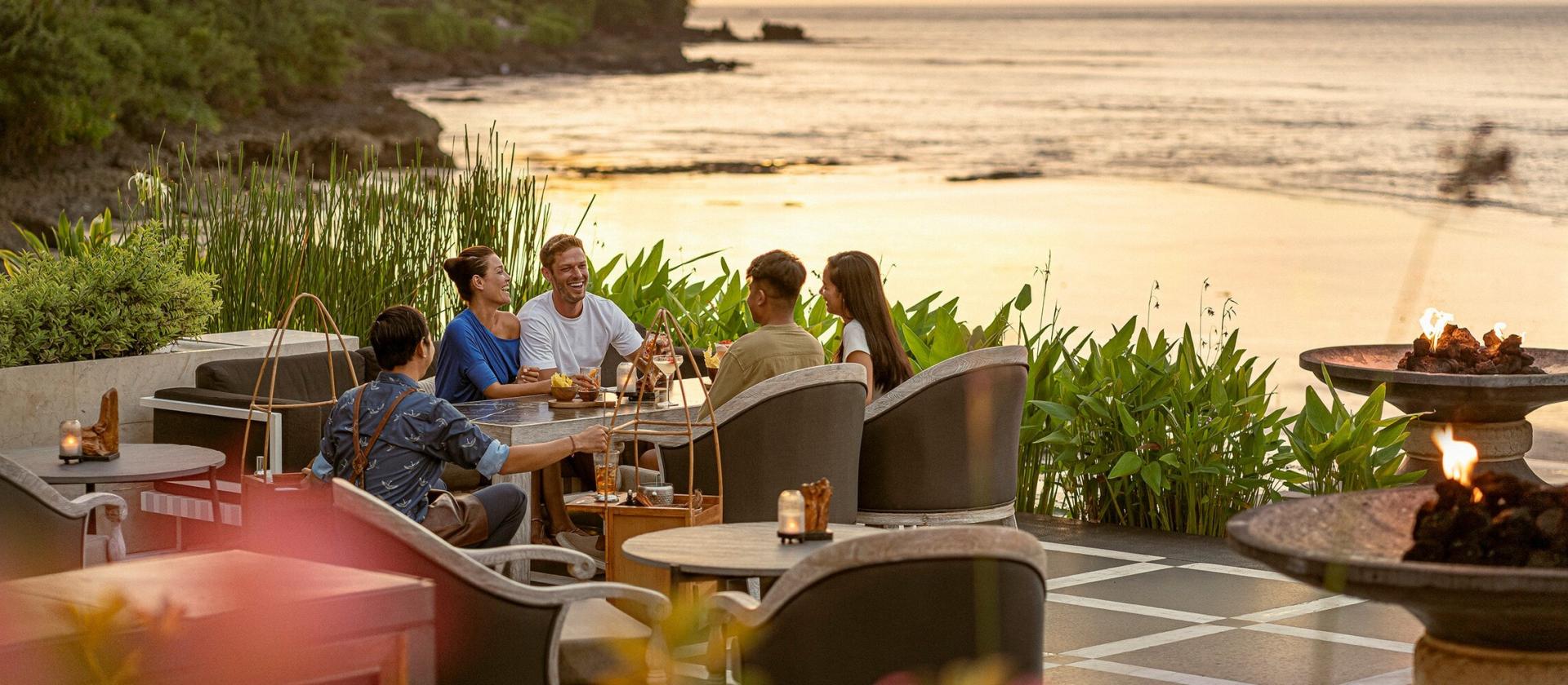 - Hotel położony jest bezpośrednio przy 5-kilometrowej piaszczystej plaży w zatoce Jimbaran, oferując spokój, bezpieczne kąpiele oraz jedne z najpiękniejszych zachodów słońca na wyspie