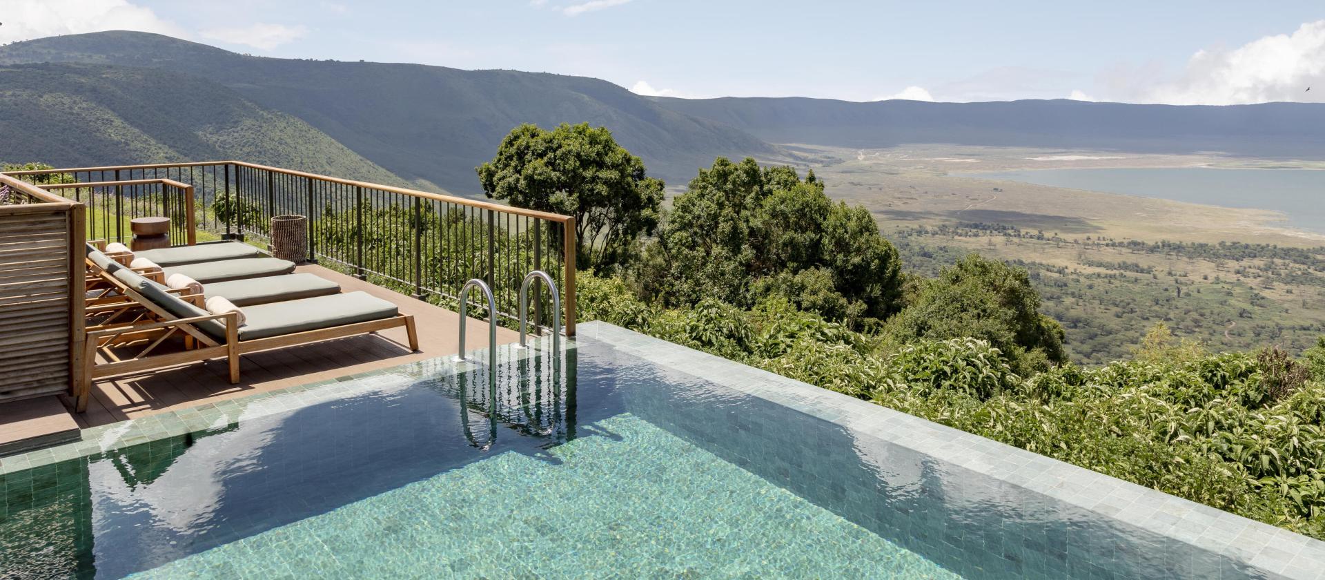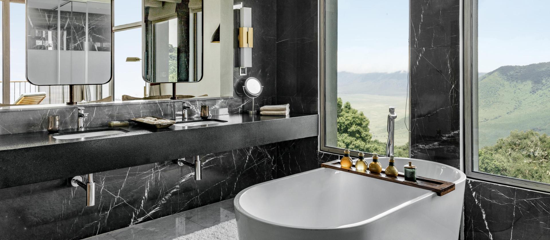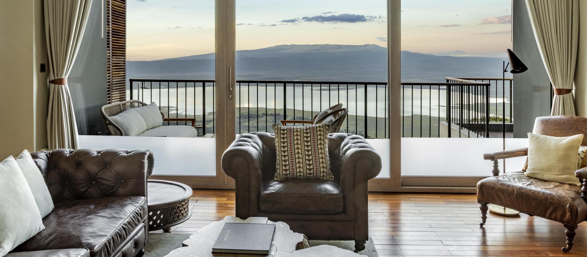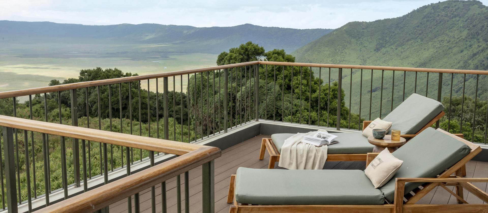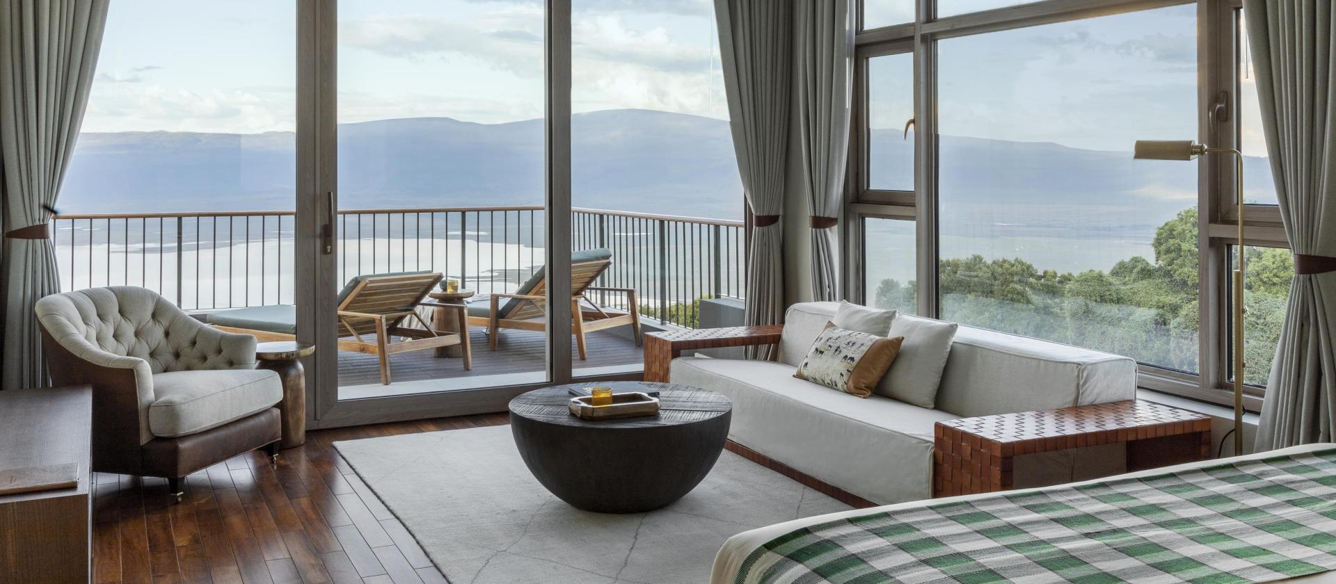 Crater Suite with Terrace / Safari Experience Wasza spektakularna suita o powierzchni około 64 mkw. oferuje dostęp do prywatnego tarasu zewnętrznego, z którego panorama Ngorongoro jest dosłownie na wyciągnięcie ręki.