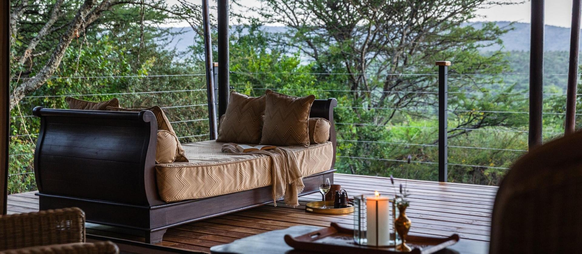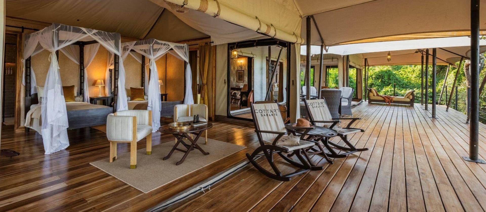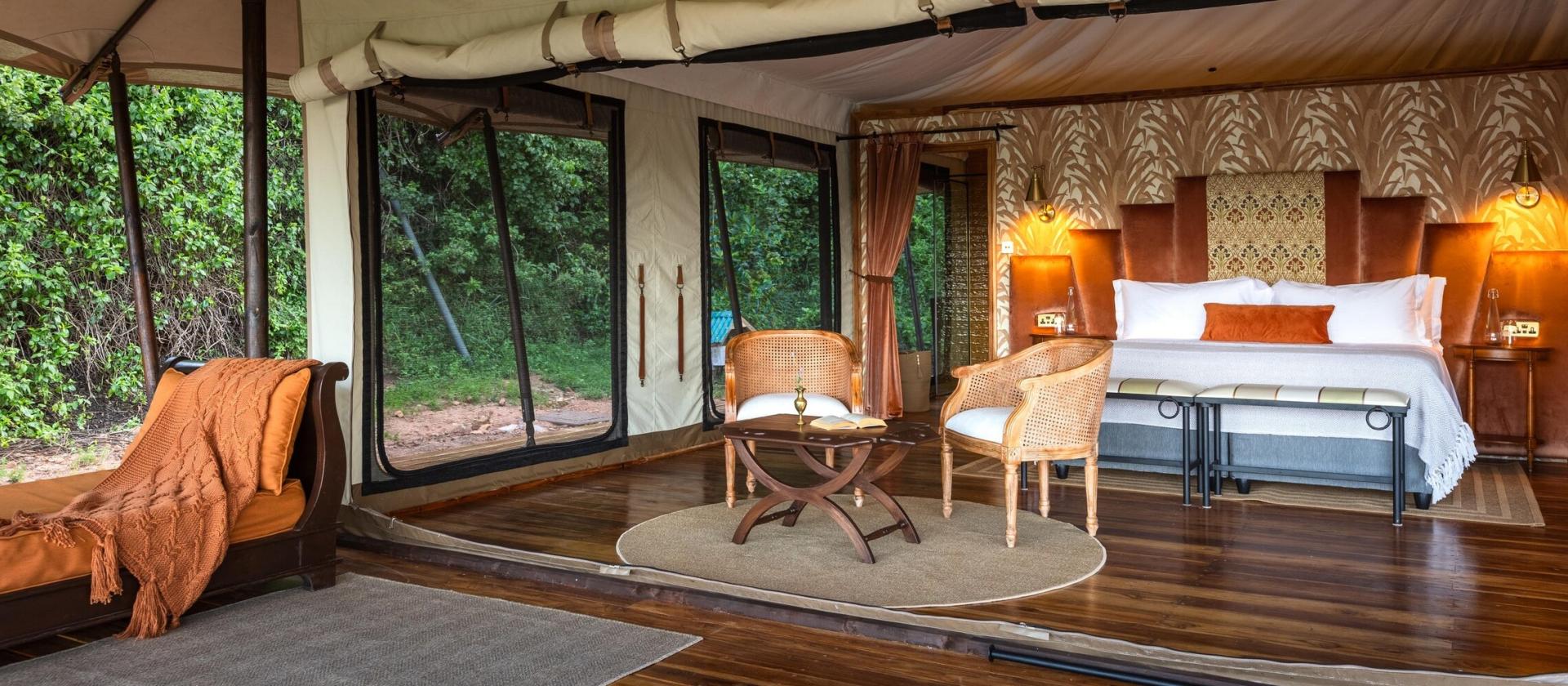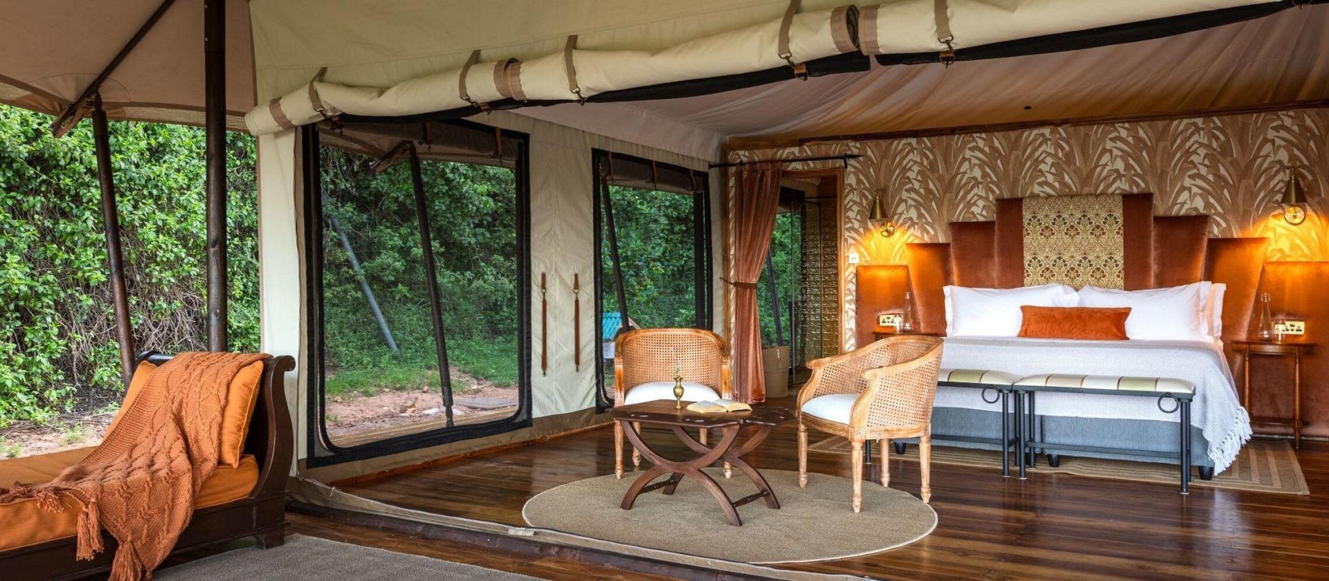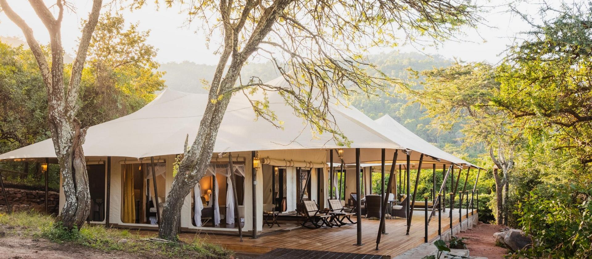 Luxury Tents Pięć luksusowych namiotów o nazwach Duma, Swala, Ndovu, Athi oraz Kudu to esencja stylu vintage połączona z nowoczesnym komfortem. Każdy namiot przeszedł staranną renowację, by zachować swój historyczny czar, oferując jednocześnie przestronne wnętrza z łazienkami en-suite oraz rozległe werandy z widokiem na nietkniętą dzicz. Niektóre z nich wyposażone są w szezlongi (daybeds), co pozwala na elastyczną konfigurację łóżek, idealną dla par lub grup przyjaciół podróżujących w konfiguracjach dwu- lub trzyosobowych.
