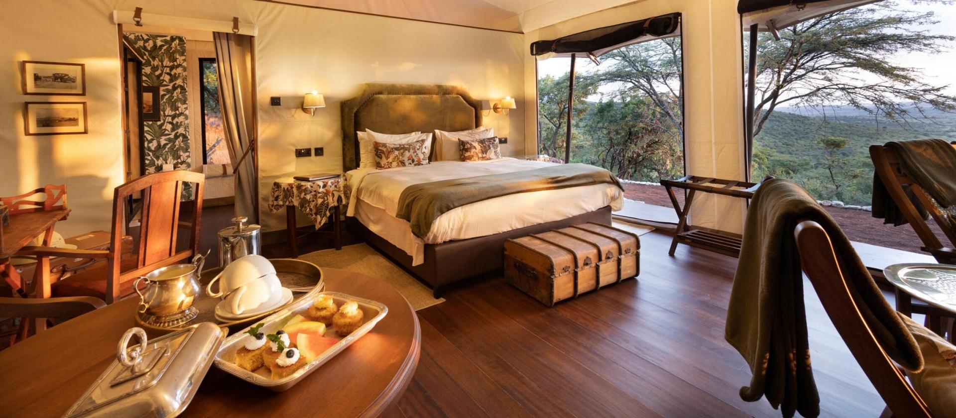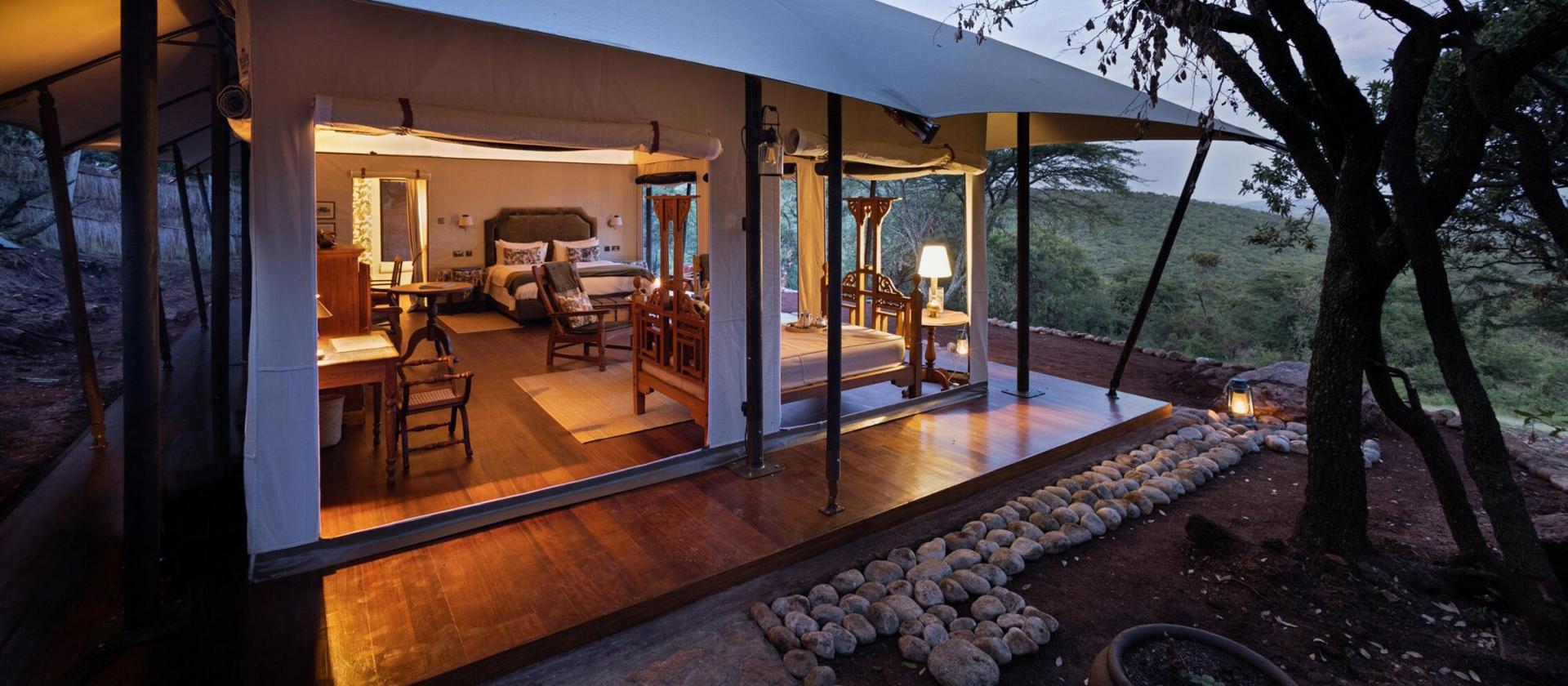 Family Tents Cztery nowe namioty rodzinne wyznaczają nowe standardy luksusu dla grup i rodzin w regionie Mara. Każdy z nich składa się z dwóch oddzielnych sypialni z łazienkami, połączonych wspólnym salonem, w którym znajduje się piec opalany drewnem, tworzący przytulną atmosferę w chłodniejsze wieczory. Przestronny taras oferuje panoramiczne widoki na sawannę, a dopełnieniem całości jest dedykowany przewodnik, prywatny pojazd safari oraz usługa bezpłatnej opieki nad dziećmi, co zapewnia rodzicom chwilę wytchnienia.