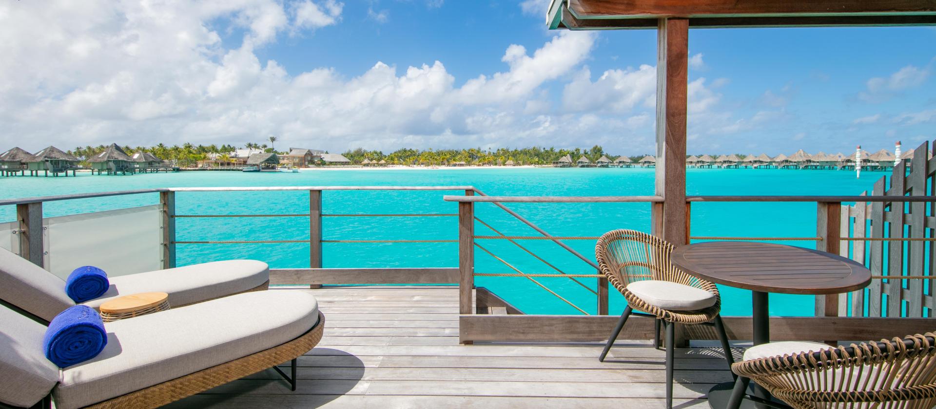 - Overwater Otemanu: 41 mkw. powierzchni, jedno łóżko typu king, bezpośredni dostęp do laguny, prywatny taras, widok na górę Otemanu