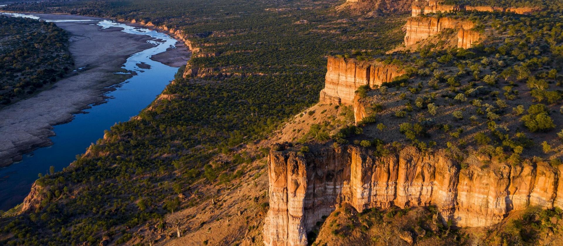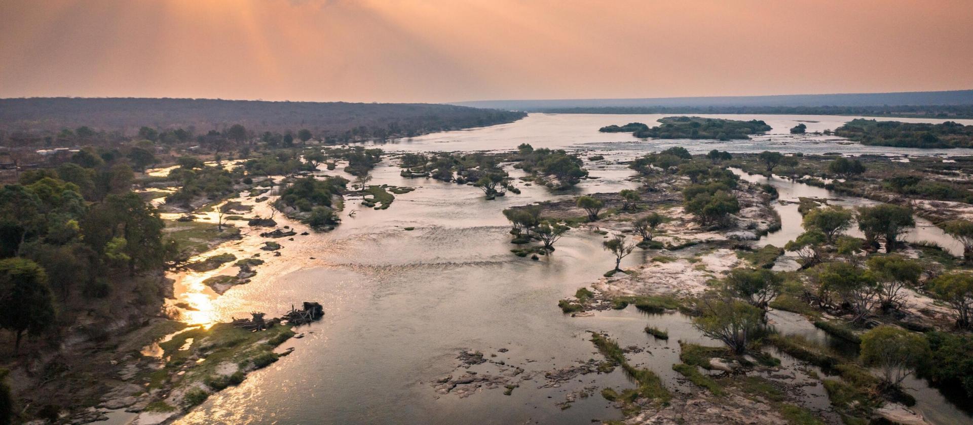 Zambezi to rzeka, która kształtuje północne krajobrazy Zimbabwe i daje życie całym ekosystemom. To na niej znajdują się legendarne Wodospady Wiktorii – jeden z największych i najpotężniejszych wodospadów na świecie. Spadające z hukiem wody tworzą nie tylko spektakl wizualny, ale i unikalny mikroklimat, w którym rozwija się bujna roślinność. Wokół wodospadów znajduje się Park Narodowy Victoria Falls, w którym żyje wiele zwierząt, ale można też podziwiać niezwykłe gatunki paproci, porostów i orchidei. To także jedno z najlepszych miejsc do obserwacji ptaków – żyje tu ponad 450 gatunków, w tym turaki i rzadkie sokoleńce.