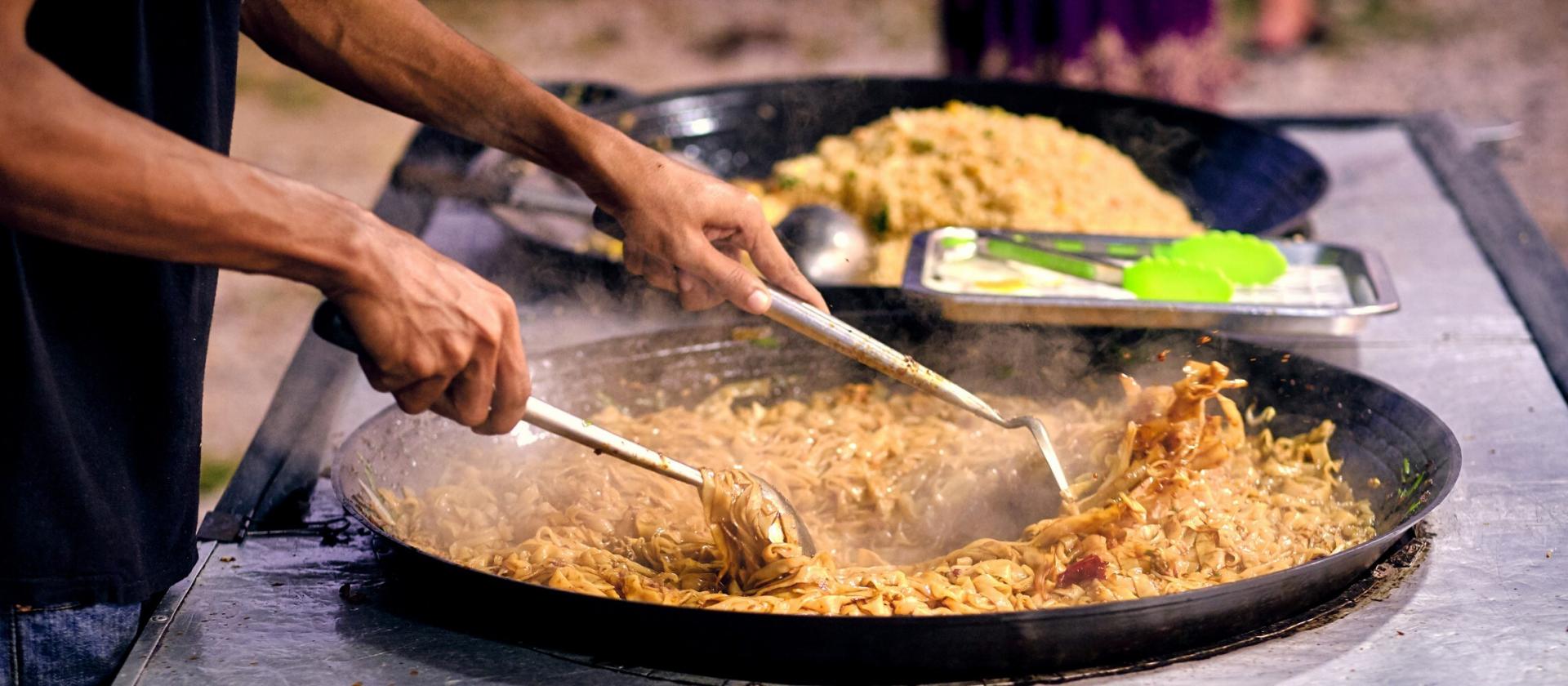 Dzielnica Chinatown, jedno z najciekawszych miejsc stolicy Malezji, słynie z najlepszego jedzenia ulicznego w mieście. Od późnego popołudnia chodniki wzdłuż uliczek Chinatown zaczynają wypełniać się stolikami i krzesłami, a w powietrzu unosi się coraz intensywniejszy zapach jedzenia. Na straganach piętrzą się setki kolorowych, pachnących smakołyków kuchni malajskiej i chińskiej. Uśmiechnięci sprzedawcy przygotowują na miejscu jedzenie ze świeżych składników. Część stoisk serwuje jedzenie do północy lub nawet dłużej, co czyni z Chinatown idealne miejsce na wieczorną kolację.