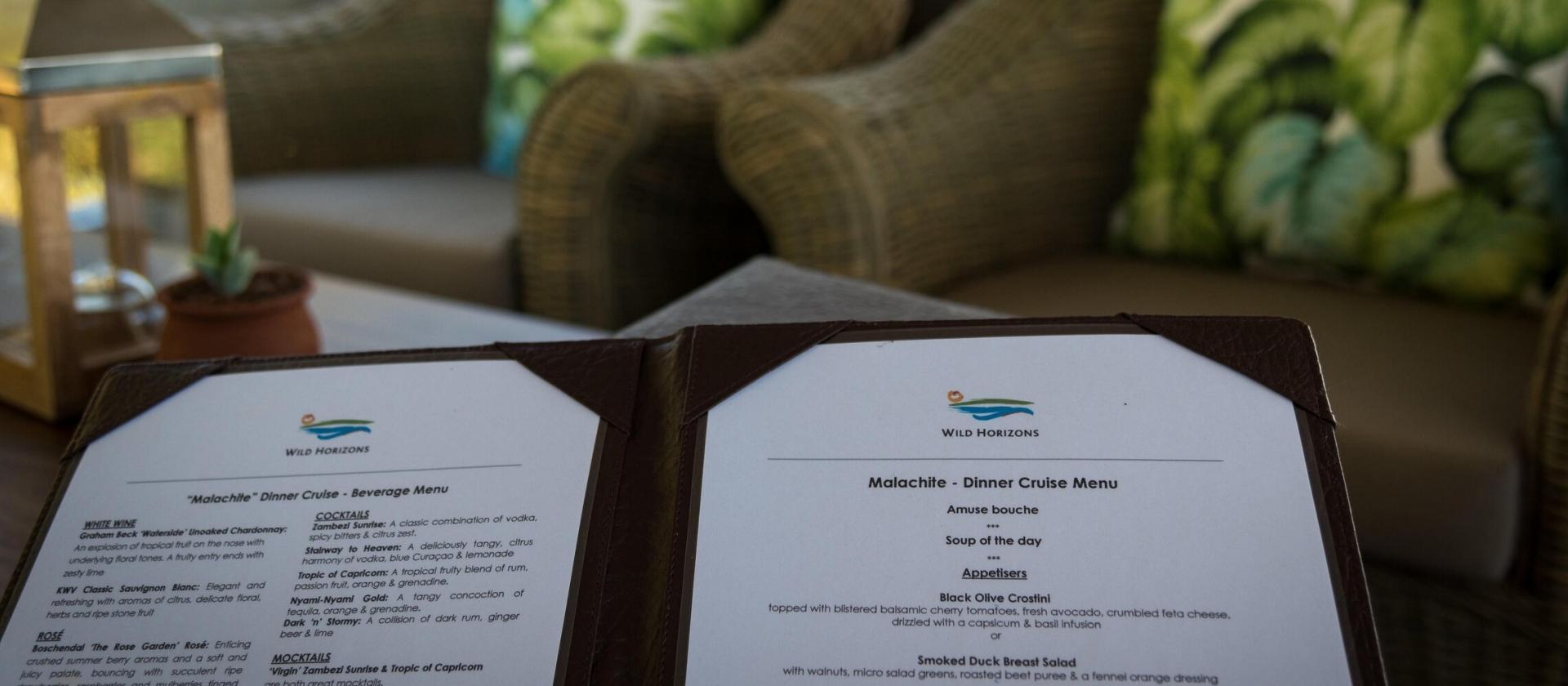 Rejs Wild Horizons Malachite Dinner Cruise to wyjątkowe połączenie afrykańskiej przyrody, romantyzmu i wyśmienitej kuchni. Zapraszamy Was na wieczorną podróż po spokojnych wodach rzeki Zambezi – jednej z najpiękniejszych i najbardziej dzikich rzek Afryki – w towarzystwie złotych promieni zachodzącego słońca, dźwięków natury i smaków, które zachwycają zmysły.