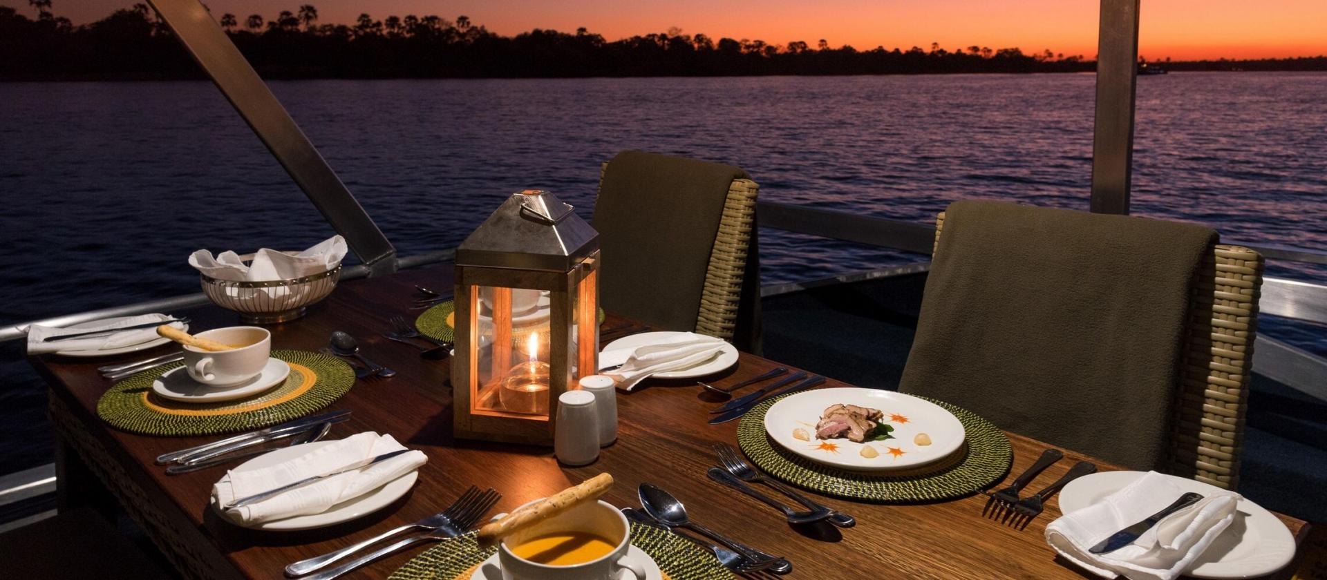 W miarę jak dzień przechodzi w noc, na pokładzie serwowana jest wykwintna, wielodaniowa kolacja przygotowana z lokalnych składników. Menu łączy smaki Afryki z elementami kuchni międzynarodowej, a każde danie podane jest z troską o detale. Blask świec i delikatna muzyka w tle tworzą magiczną atmosferę, sprzyjającą rozmowom, romantycznym spojrzeniom i spokojnej kontemplacji.