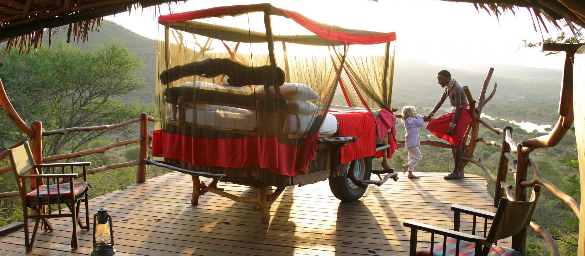Star Beds to w zasadzie nocleg pod gwiazdami, najbliżej przyrody jak to tylko możliwe. Wygodne łóżko usytuowane jest na zewnętrznej platformie przed domkiem, co sprzyja podziwianiu nieba aż do późnych godzin nocnych i umożliwia kontemplowanie wschodów słońca nad sawanną.